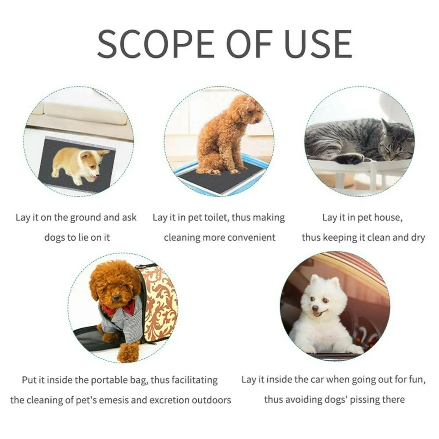 A.Soft non-woven surface to keep your pet clean and dry; B.High absorption and fastlockup; C.Keep your house tidy and clear. | ||||||||
