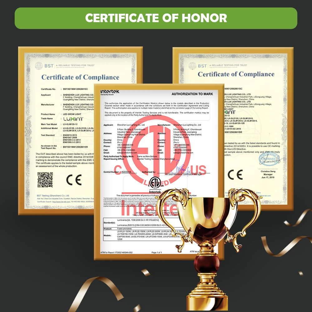Report and Certificates | ETL, DLC , LM-79, IES,ISTMT, TM-21 |