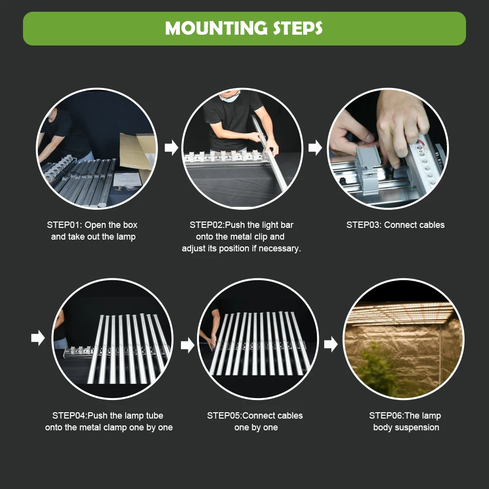 One Set Included | 12 x bars Grow light 2 x Adjustable rope hanger 1 x User manual for installation 1 x Power cord |