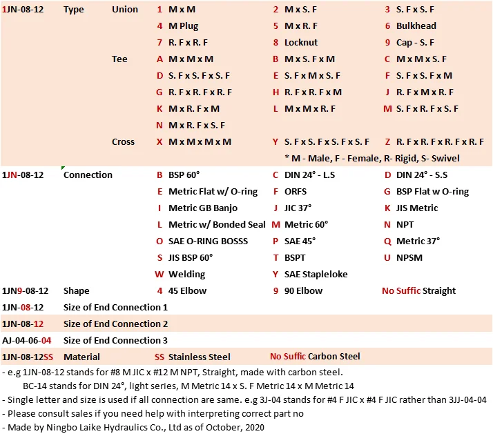 North American: NPTF, NPSF, NPSM, JIC, SAE, O-Ring Boss, O-Ring Flange, O-Ring Face Seal (ORFS), Flareless Tube, North American Stand Pipe (NASP), SAE Inverted Flare