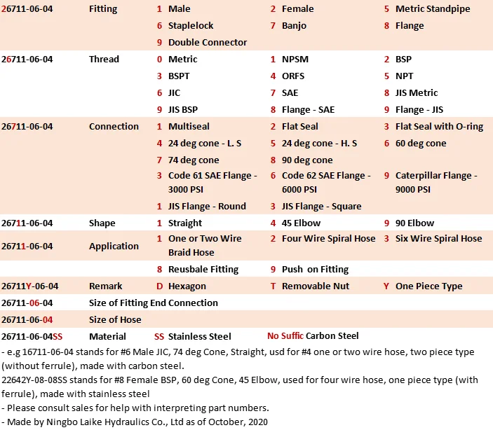 One or two wire hose such as R1, R2, 1SN, 2SN, 1SC, 2SC; four wire hose such as 4SH, 4SP, R12, R13; six wire hose such as R13 and R15; other hose such as texture hose.