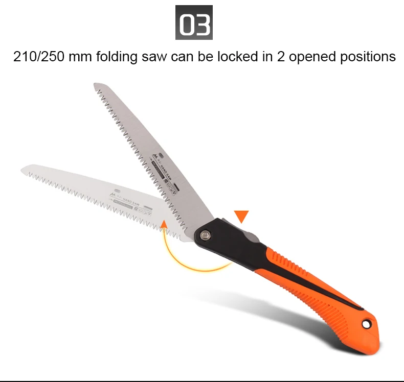 * General purpose folding saw with three different sizes blade, 7 teeth per inch, for cutting both green and dry wood, plastic,or bone. |