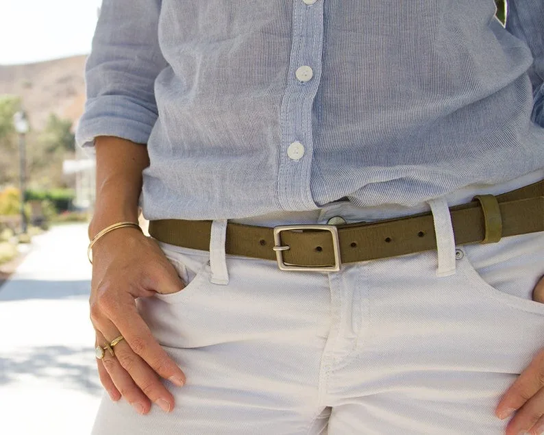 A sleeker and lower profile belt with classic look handcrafted with the most durable vegetable tanned leather and an made solid brass buckle. It measures 1" wide and makes for the perfect accessory to your denim or chinos.
