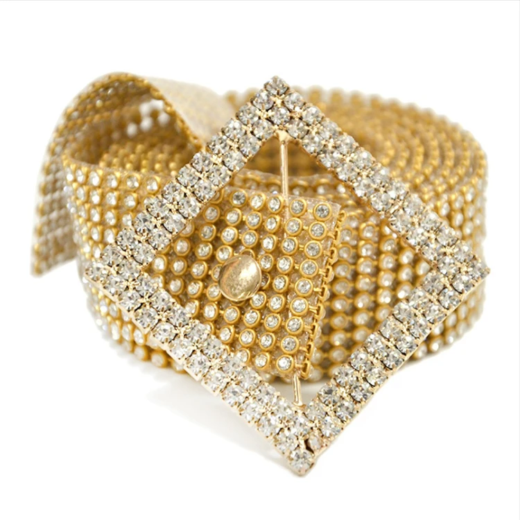 - Fashion Gold Ladies Sexy Wide Womens Chain Belts With Rhinestone