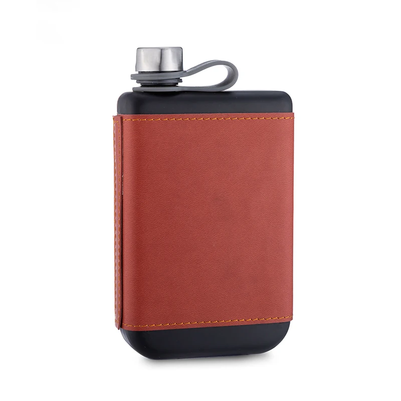8oz Custom Leather Square Hip Flask BPA Free Stainless Steel Classic Matte Black Whiskey Vodka liquor Alcohol Bottle