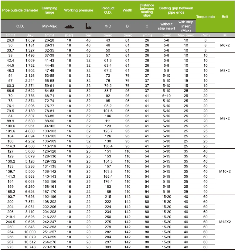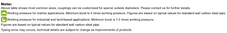 GRIP-G Pipe Couplings Technical Parameter