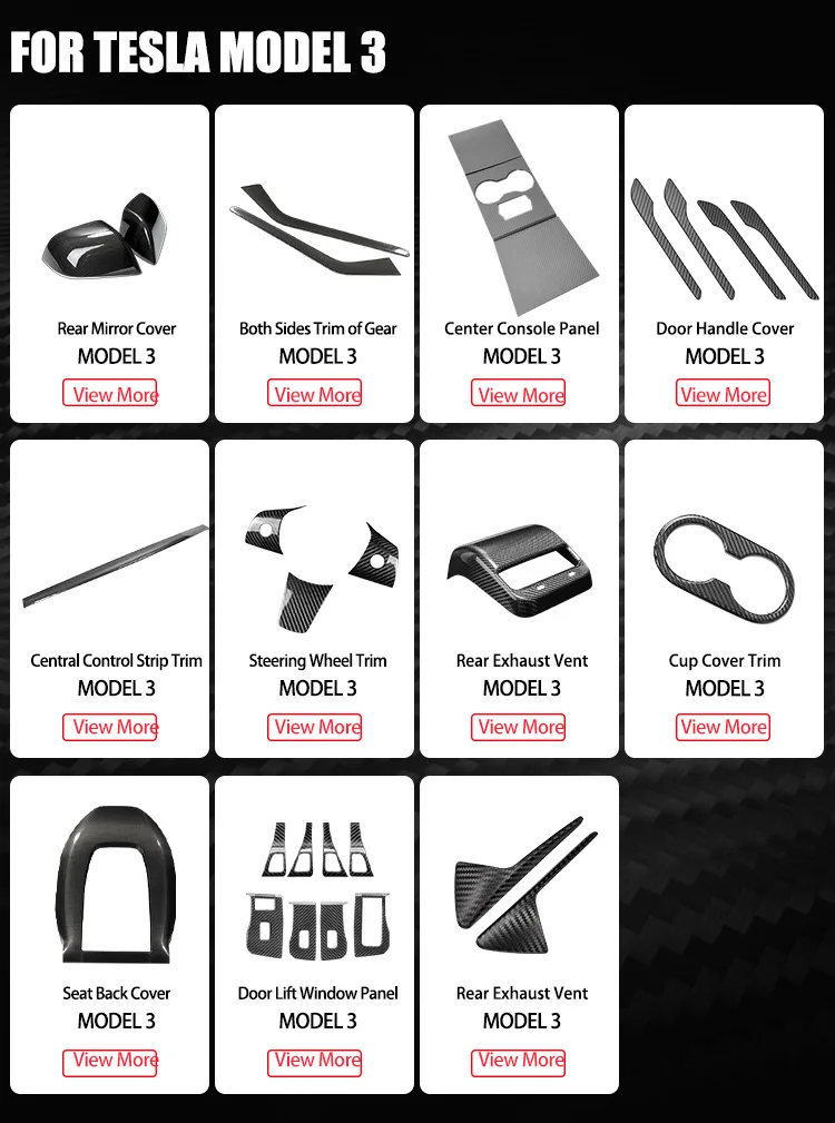 Carbon Fiber Car Interior Accessories Instrument Panel Trim Dashboard Trim For Tesla Model 3 Carbon Fiber Sticky