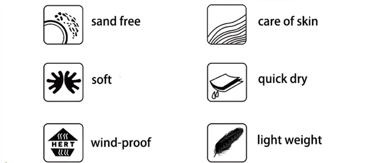 Features | quickly dry,sand free,care of skin,wind proof,light weight,soft,Antibacterial |
