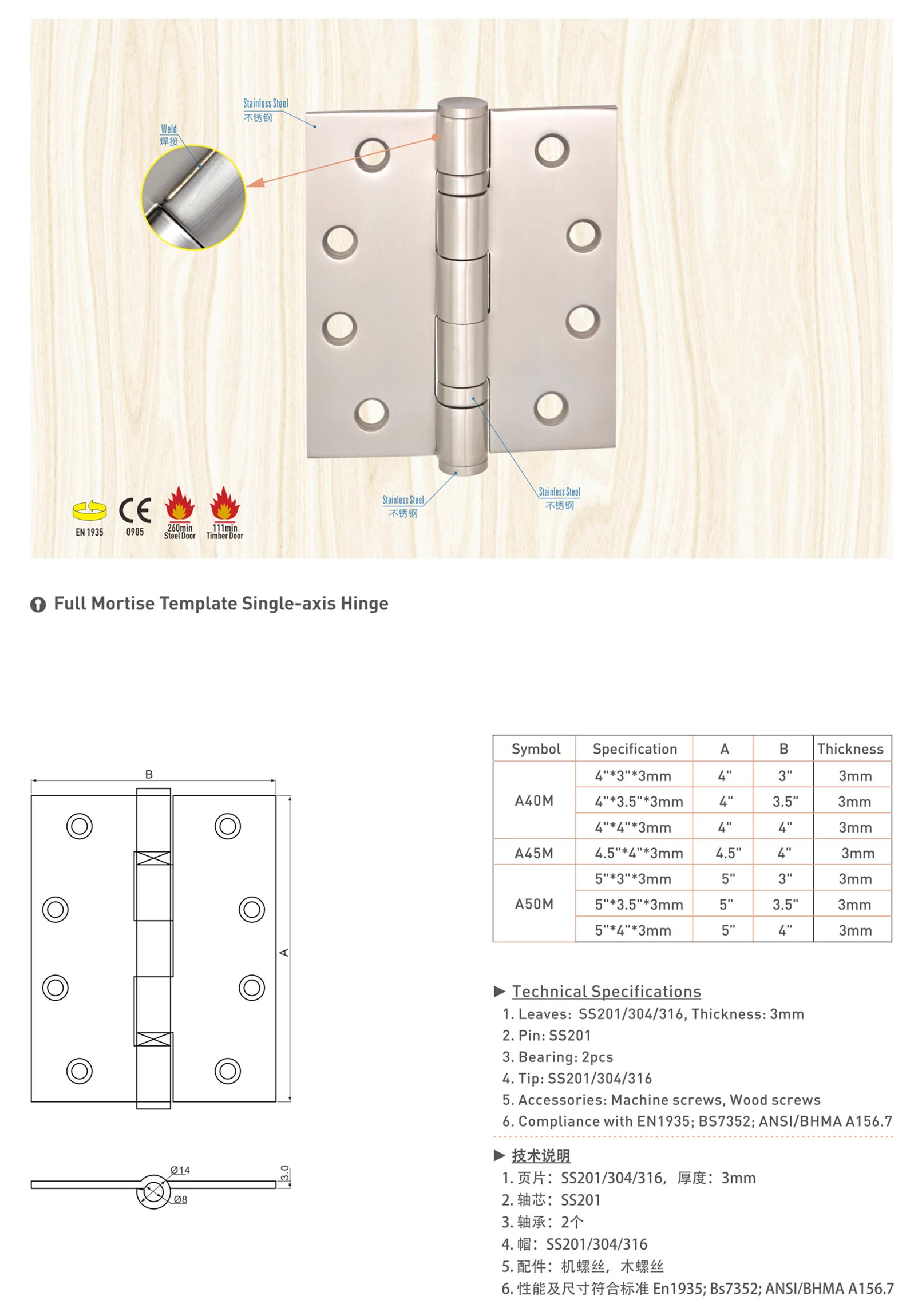 3.Compliance with BS7352, ANSI/BHMA A156.7 | ||