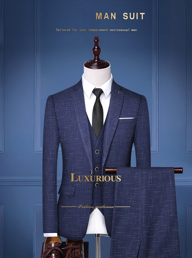 High quality blue wool wedding men 3 Piece suits