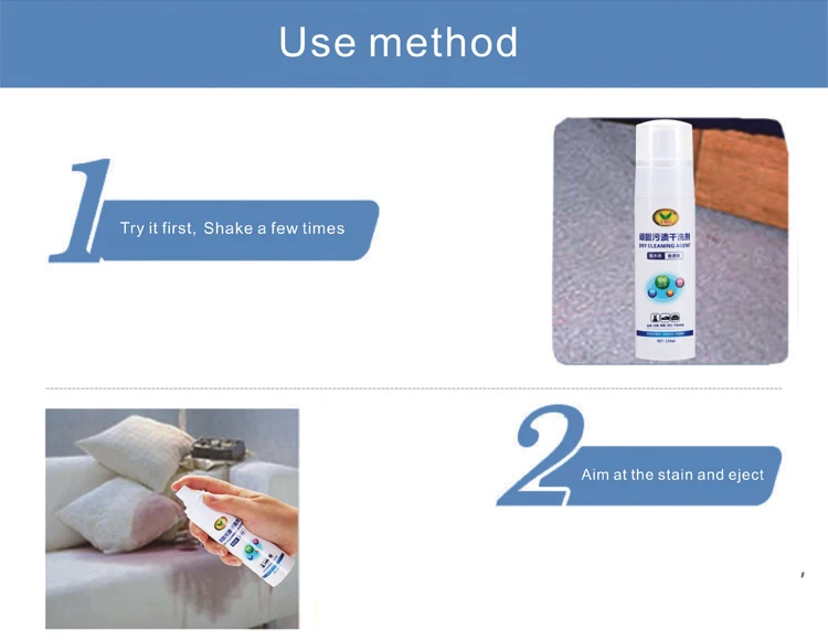 This is a fabric dry cleaner for cleaning stains on clothes, sofas, shoes, and carpets. It is easy and fast to clean without water. Support OEM. Support small order.