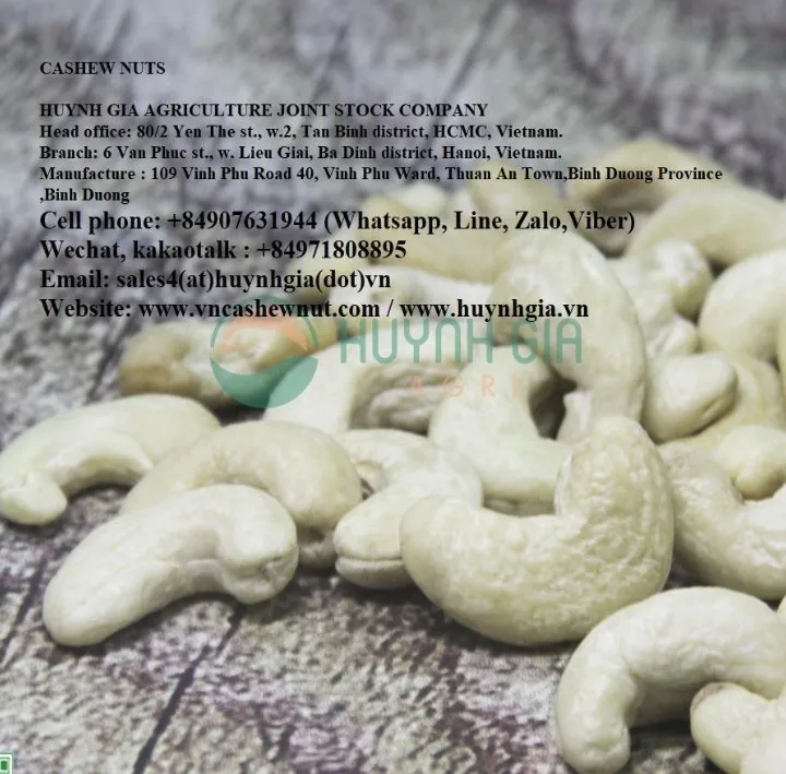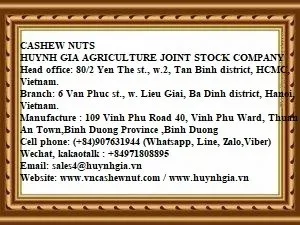 We_HUYNH GIA AGRICULTURE JOINT STOCK COMPANYare the leading supplier of Organic and Conventional Cashew Nuts from Vietnam with 10 years experience in this field.