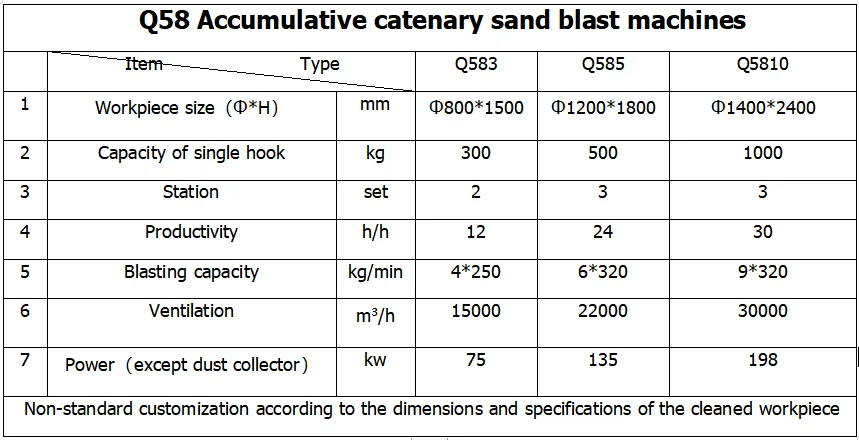 Technical parameters of Q58 shot blasting machine