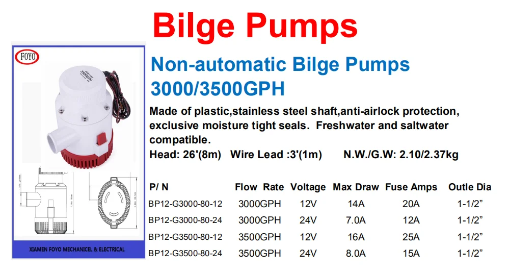Newmao 12v bilge pump with 2000GPH for marine