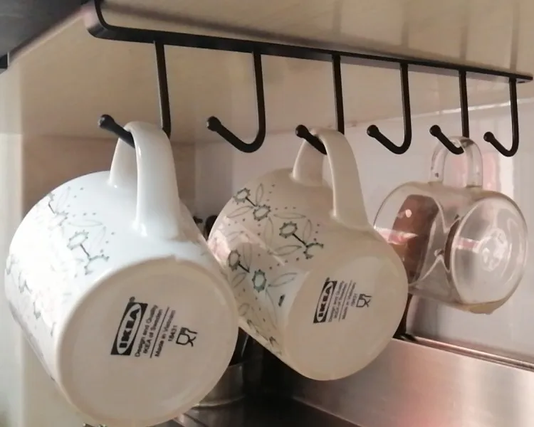 Slide the rack over the cabinet or shelf. No drilling free damage. To hang ties, caps, bags, necklace, clothes, just slide the rack over your cabinet, also hanging any kitchenware as you like.