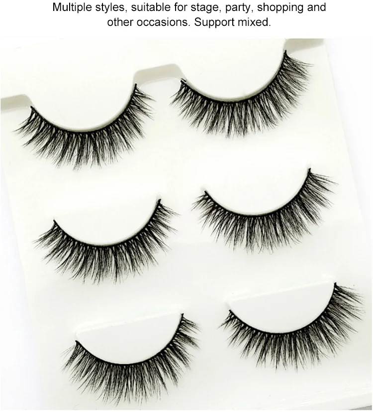Wholesale 3pairs Fake Eyelashes Custom Handmade Cruelty Free Natural Short Looking Mixed 3d Silk Mink Lashes With Box