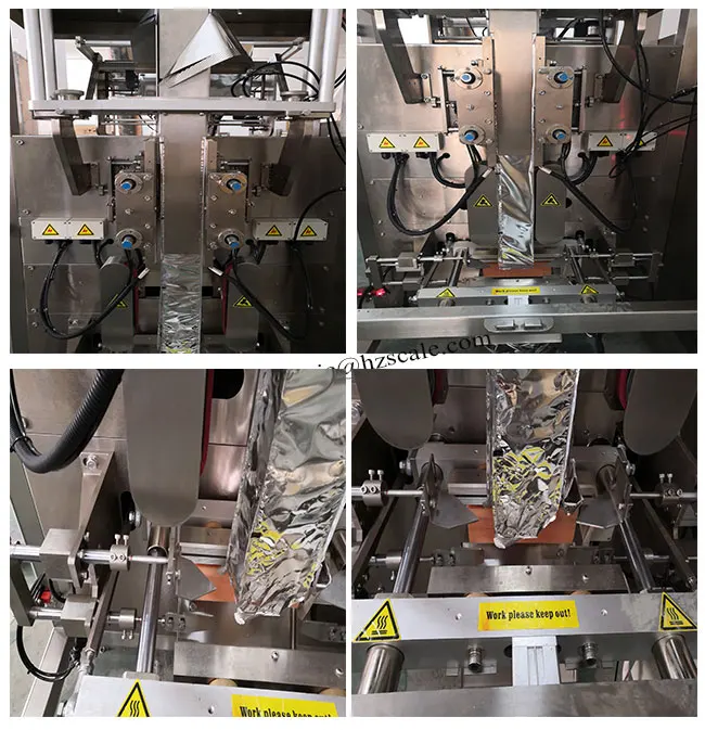 7. Working with weighing or filling machines such as multihead weigher, volumetric cup filler, auger filler or feeding conveyor,process of weighing, bag making, filling, date printing, charging (exhausting), sealing, counting and delivering finished product can be completed automatically. | ||||||||