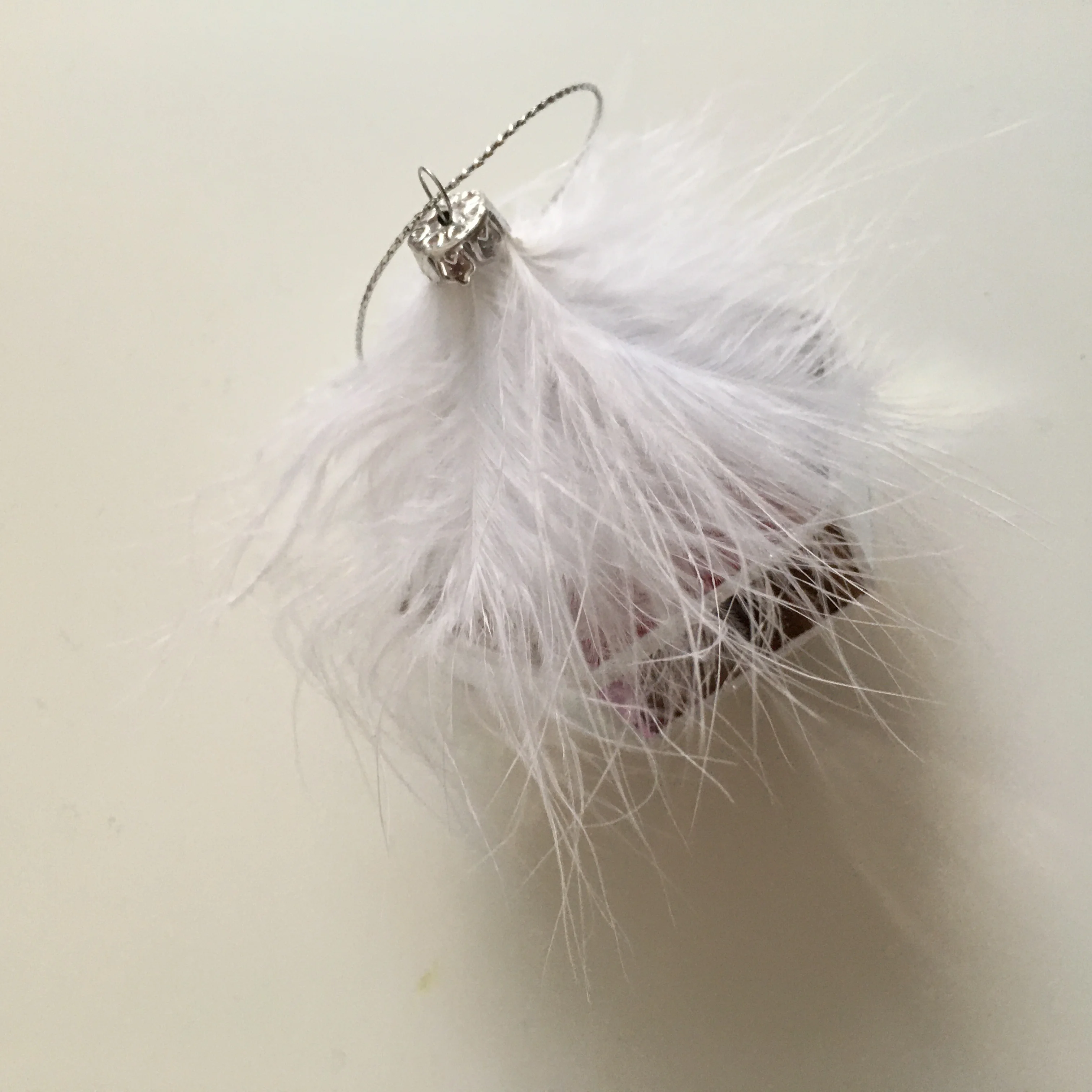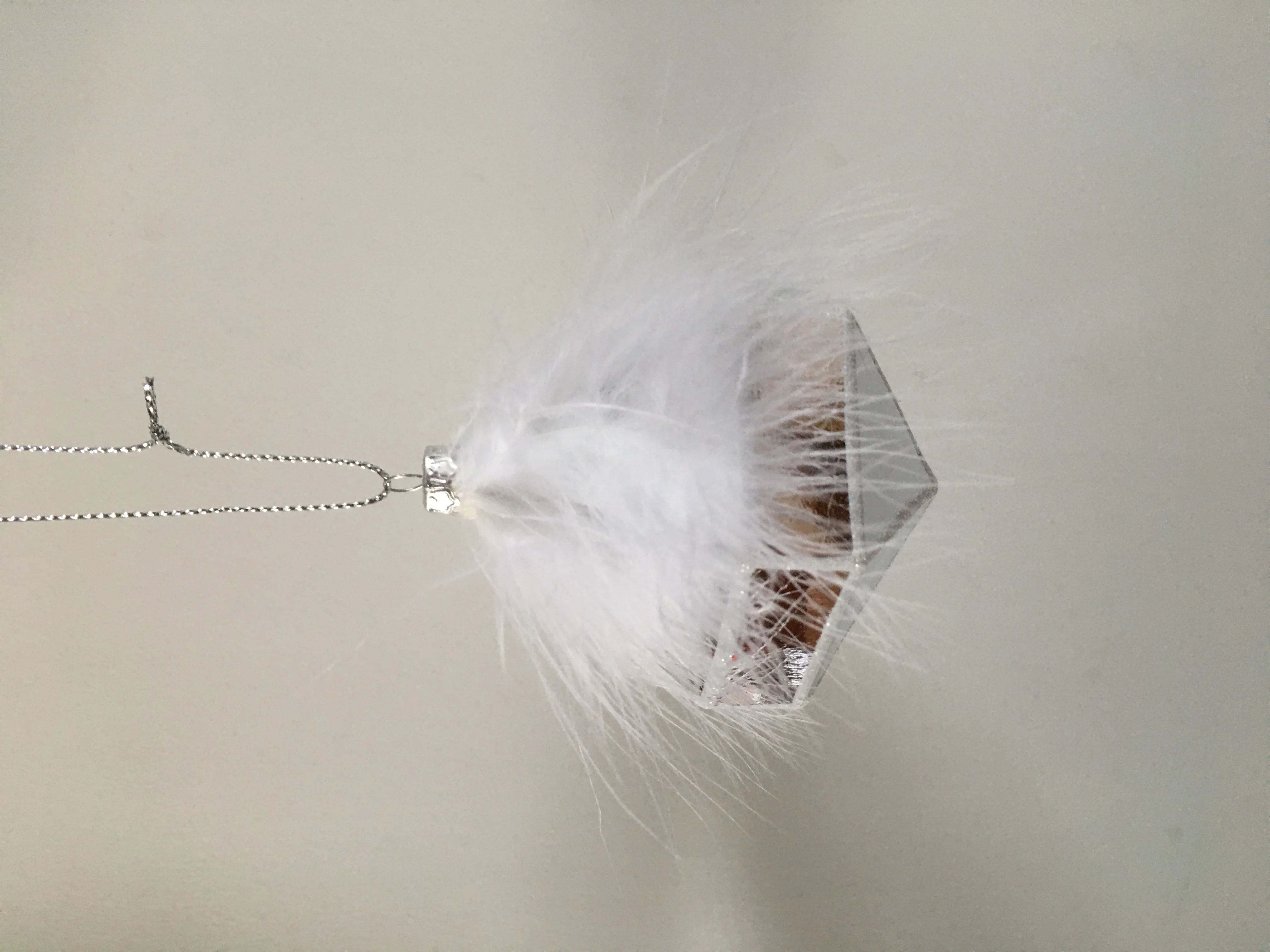 DESCRIPTION | Personalized Glitter Plastic Polygon Silver Christmas Ball With White Feather | ||||||