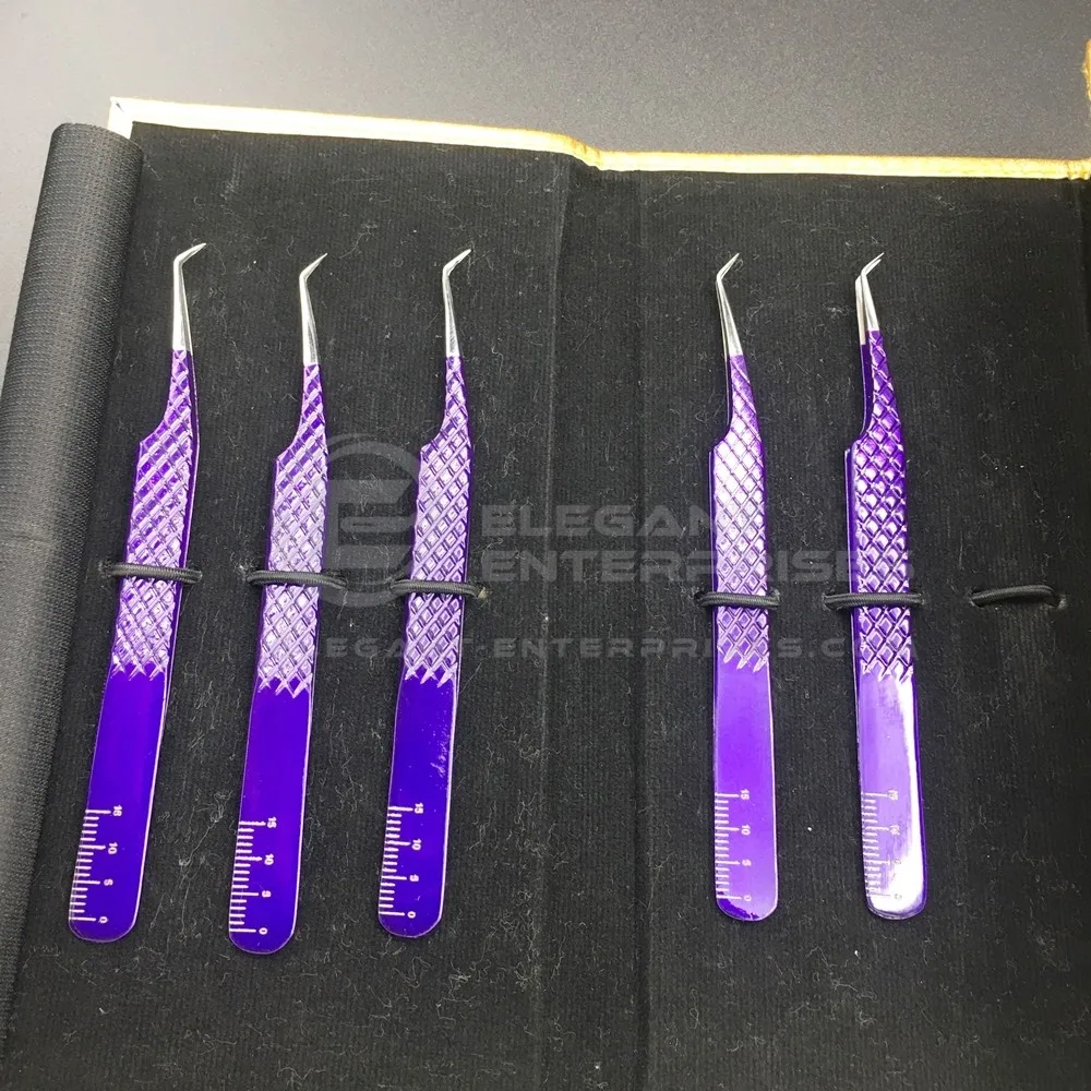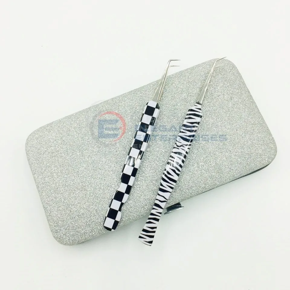 We provide the tweezers in different finishes such as mirror polish, Matt/satin, sand blasted, gold plated, multi color , rainbow colors, plain colors, animal prints finish and in all pan tone shades etc.