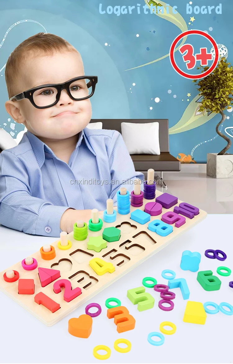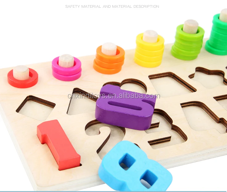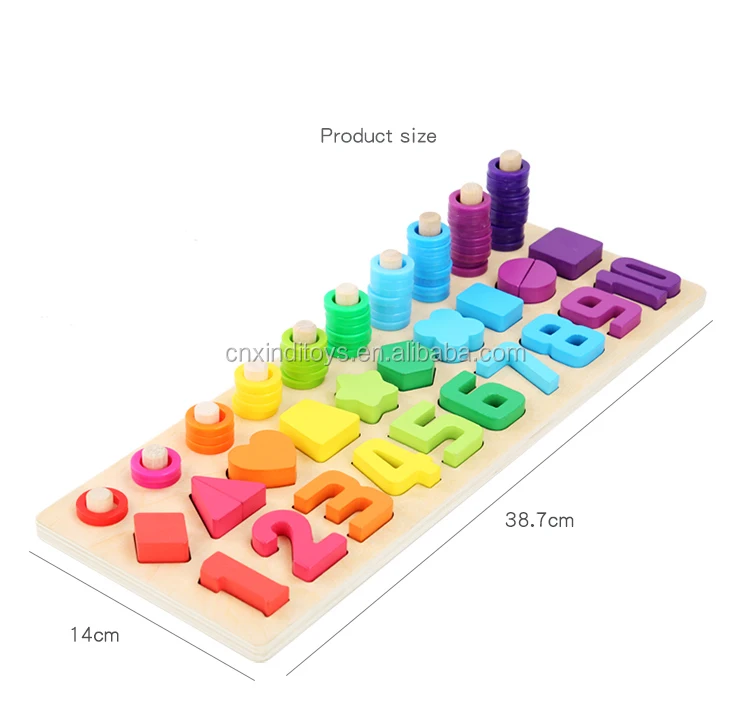 wooden toys Montessori count geometric shape cognition match puzzle educational boards