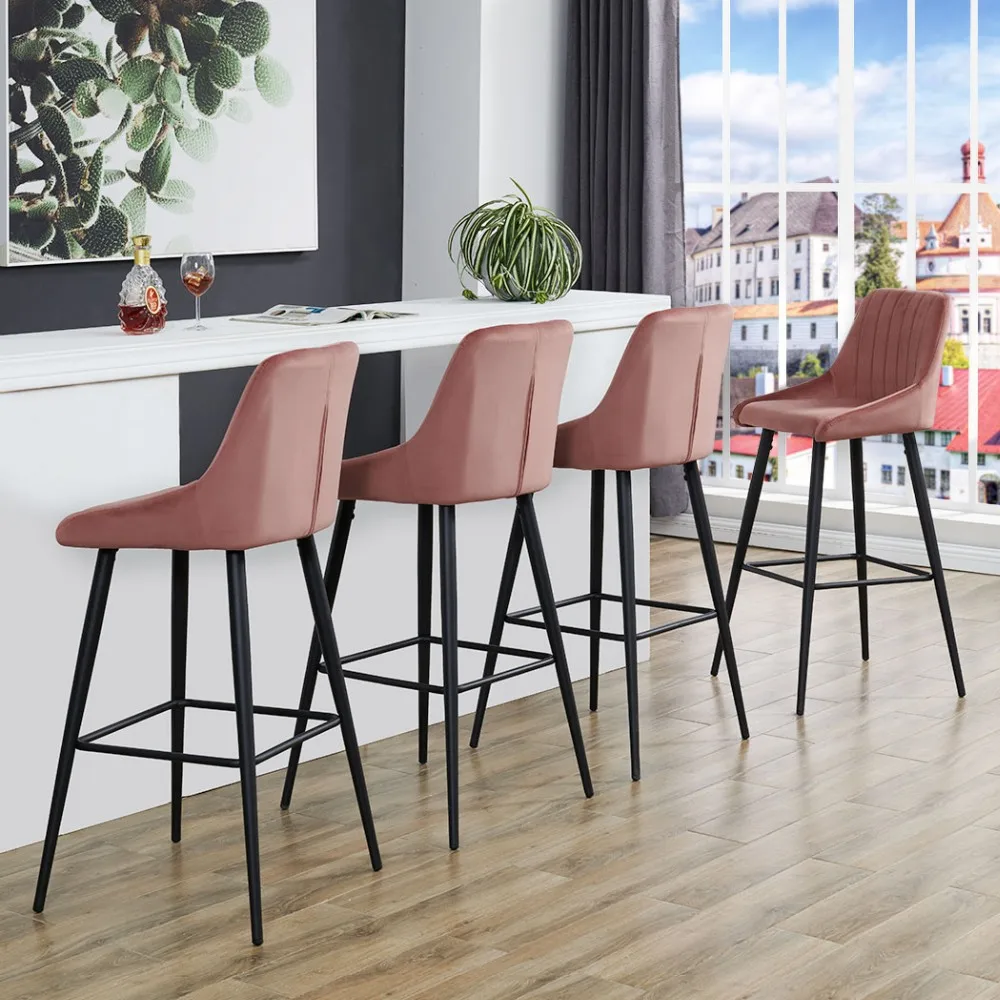 furniture bar Velvet Seat pink High Legs Custom modern Coffee Restaurant Stool Bar Chair