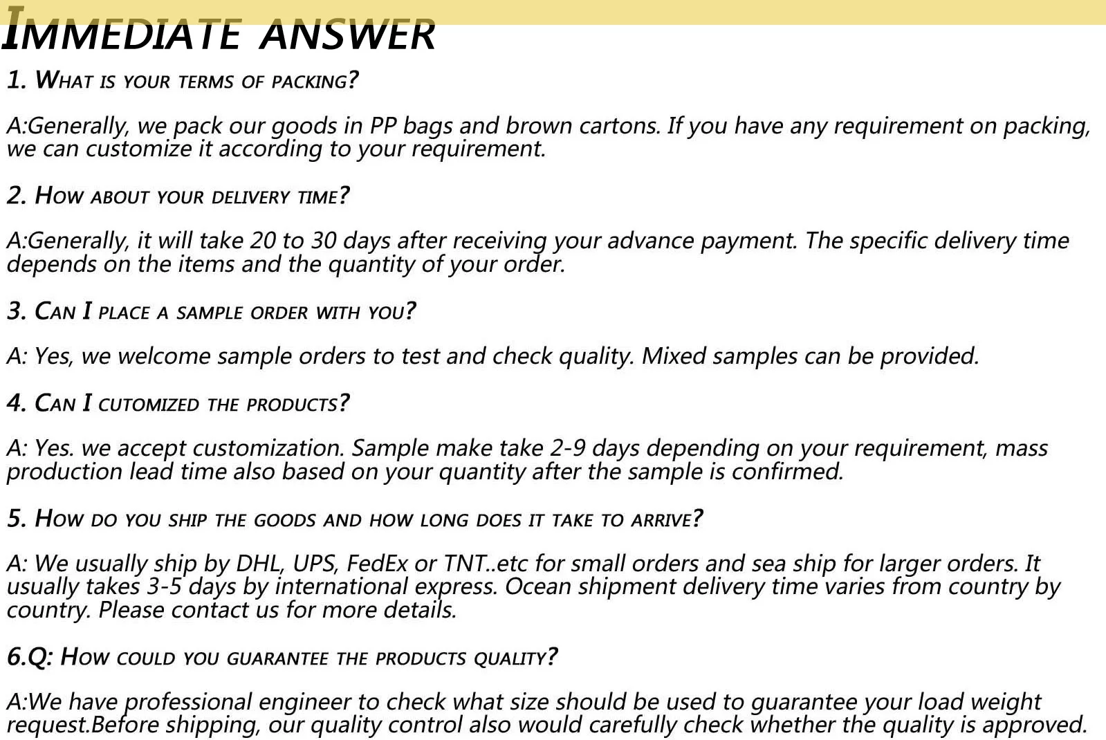Sample lead time: | 7-10 days |