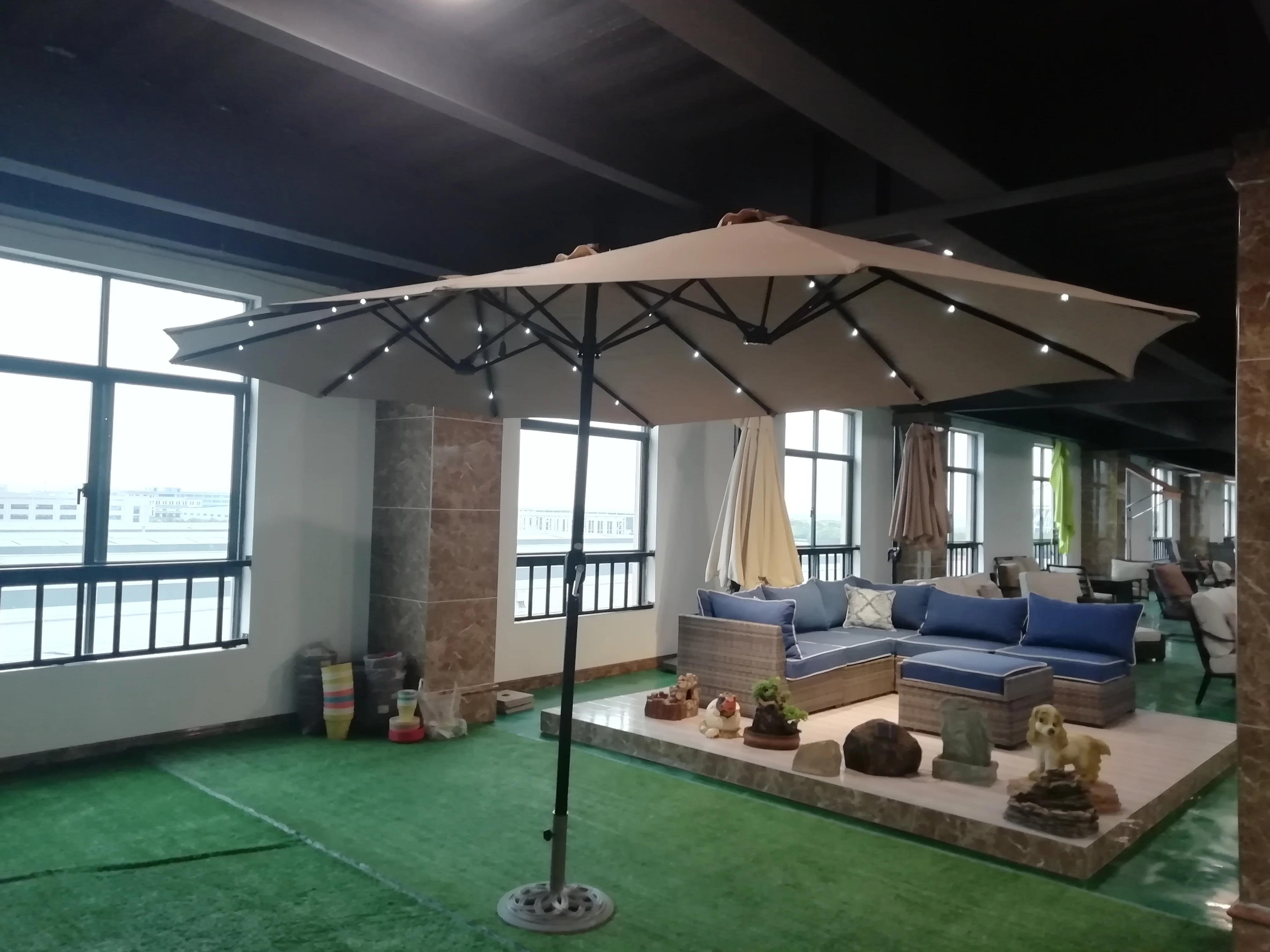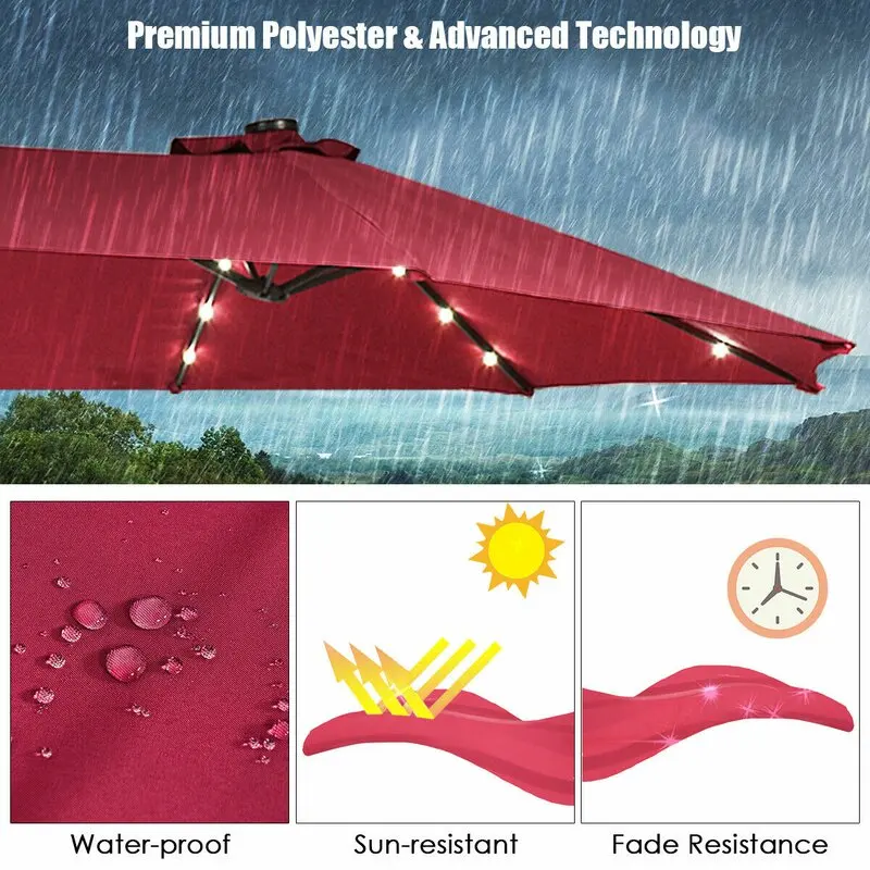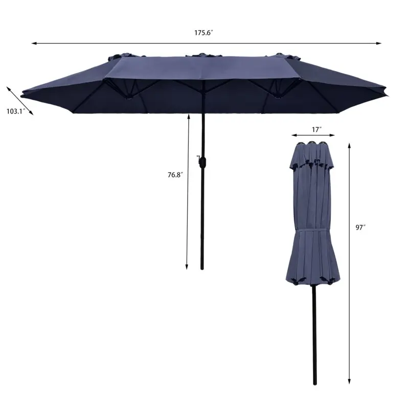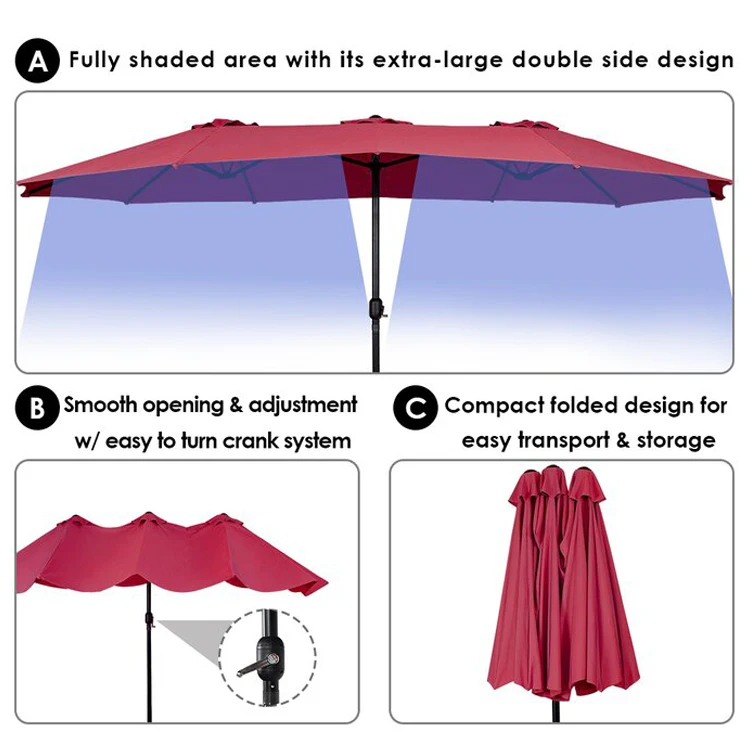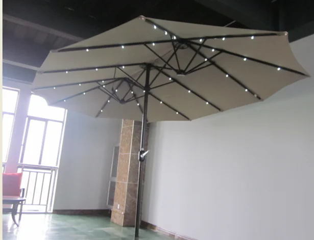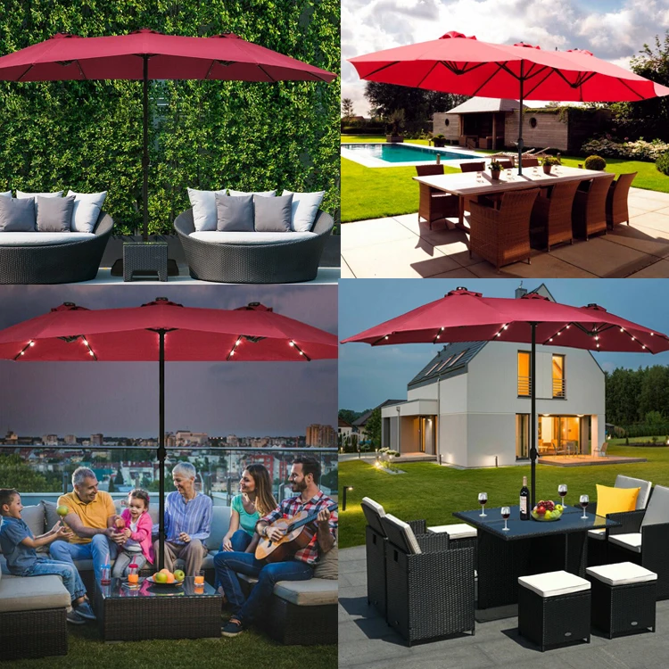Product Name | 14X9FT Double Sided Sun Canopy Straight Pool Side Market Patio Outdoor Beach Solar LED Light Umbrella with Crank | Style | |||
