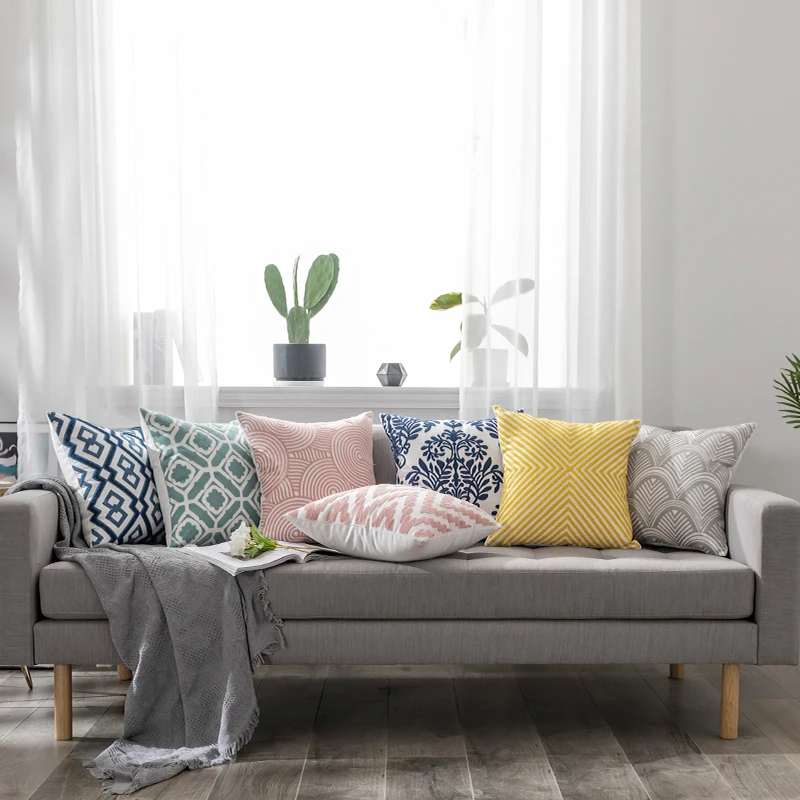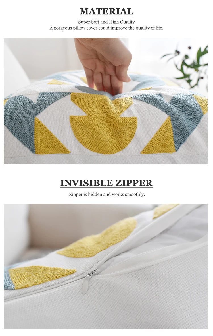Hand Embroidery Cushion Cover European Luxury Geometric Embroidered Throw Pillow Cover Decoration Pillow for Couch 18*18 inch