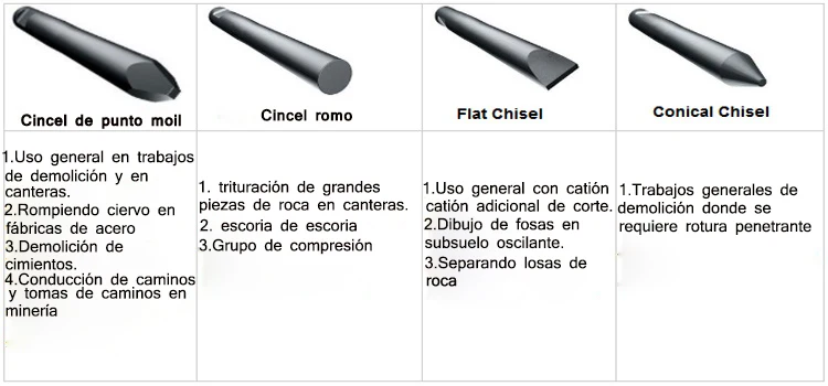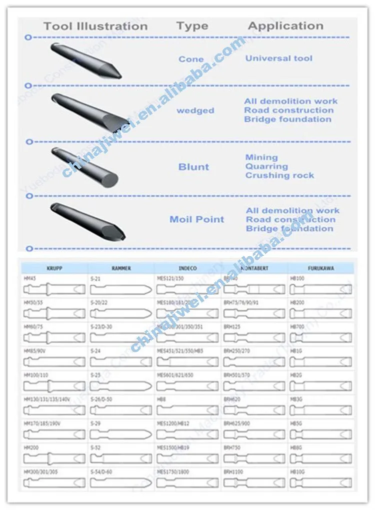 Brand Name | We can supply chisel tool for the following excavator hydraulic hammers. If they are not what you need, tell us your hydraulic rock breaker modle brand. | ||||||