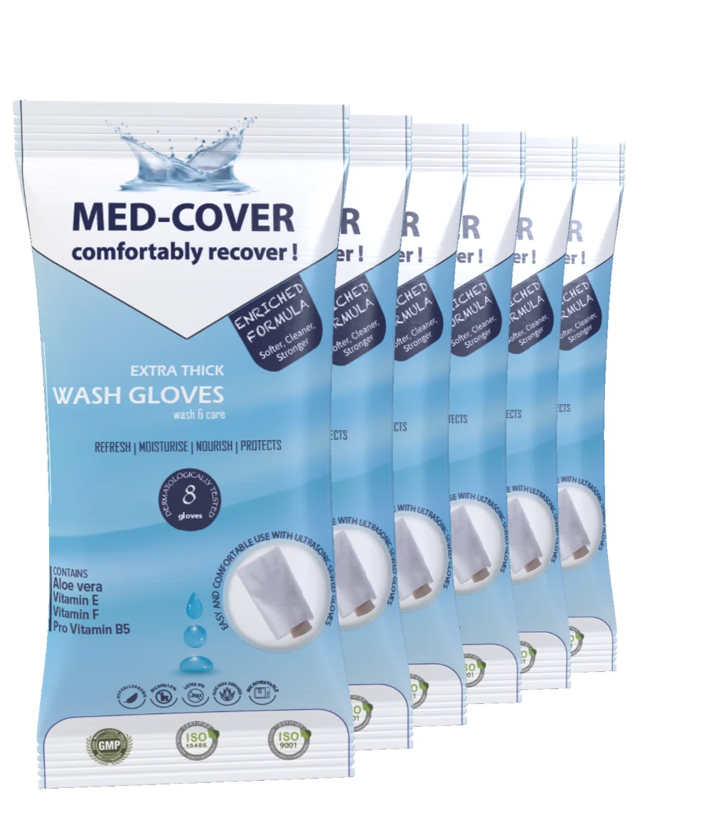 They are 99.99 % effective on gram negative and gram positive bacteria with Chlorhexidine. It can be used for daily body cleaning in bedridden patients, intensive care patients, restricted mobility. Pre- and post-operative patients can be used to protect their body from environmental infections. It has a rich content and cleansing effect as well as a professionally skin care. It is suitable for frequent use with soft cloth texture and skin-friendly pH grade. Unlike other cleansing products it does not dry the skin on the contrary it gives the skin nutrition and handiness
