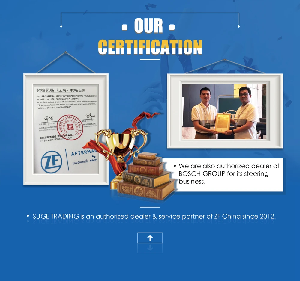 A: We are trading company located in ShangHai, we are authorized dealer and service partner of ZF China since 2012.