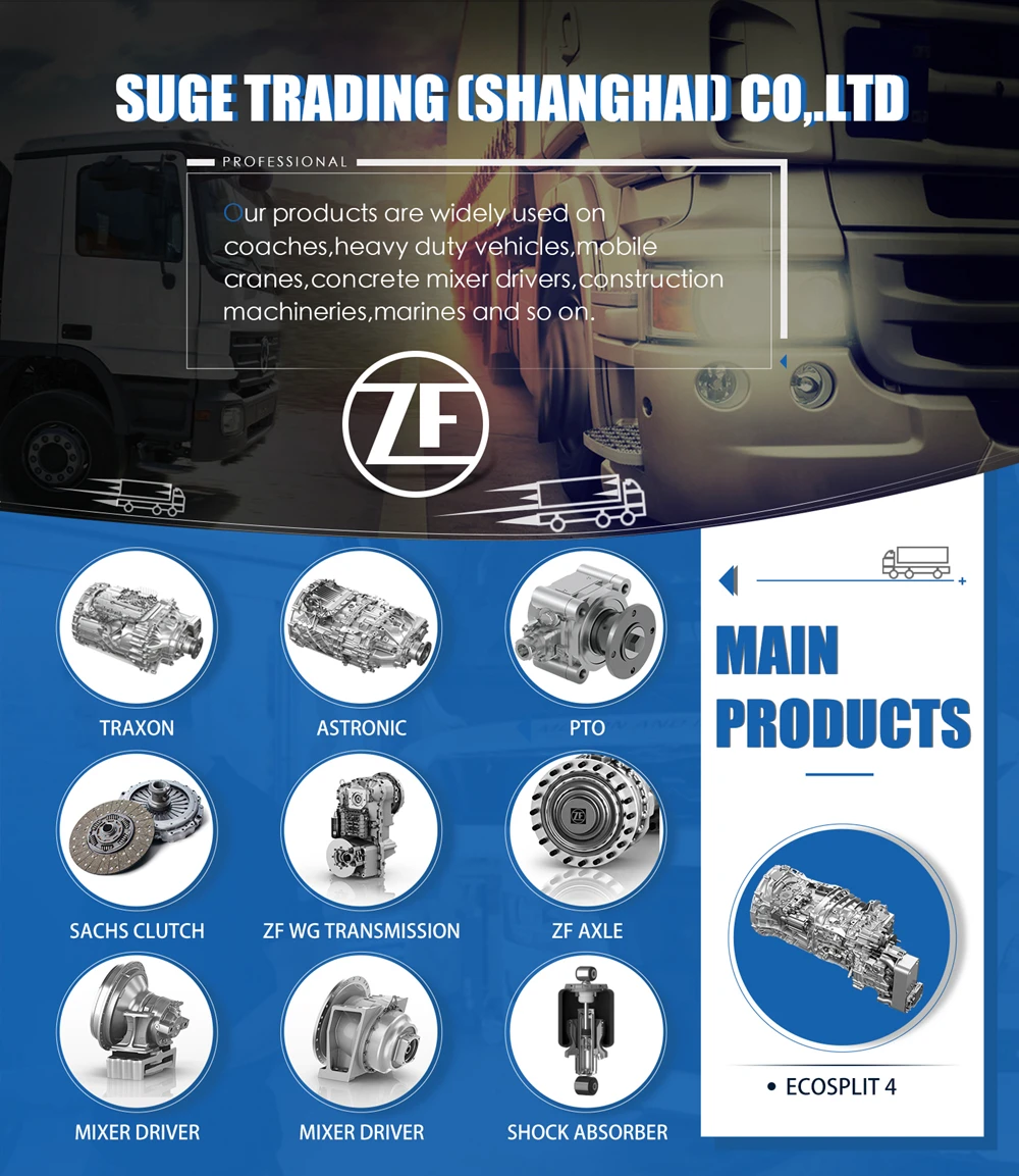 A: We focus on ZF transmission ,SACHS clutch applicated on TRUCK, WHEEL LOADER,MOBILE CRANE and so on.We got more than 1 milion USD stocks of ZF gearbox parts used on MT & AMT such as 16s1650 16s221 16s2530 16s2531