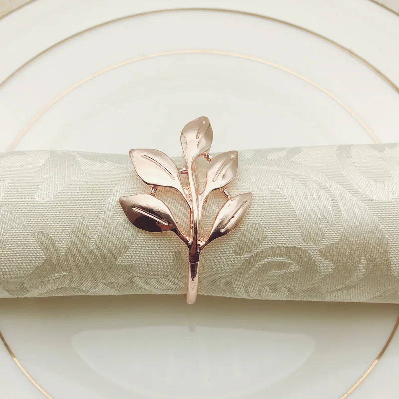 Gold Plating Metal Leaf Napkin Rings Stocked Leaves flower Napkin Holder for For Wedding Party home Dinners Decor