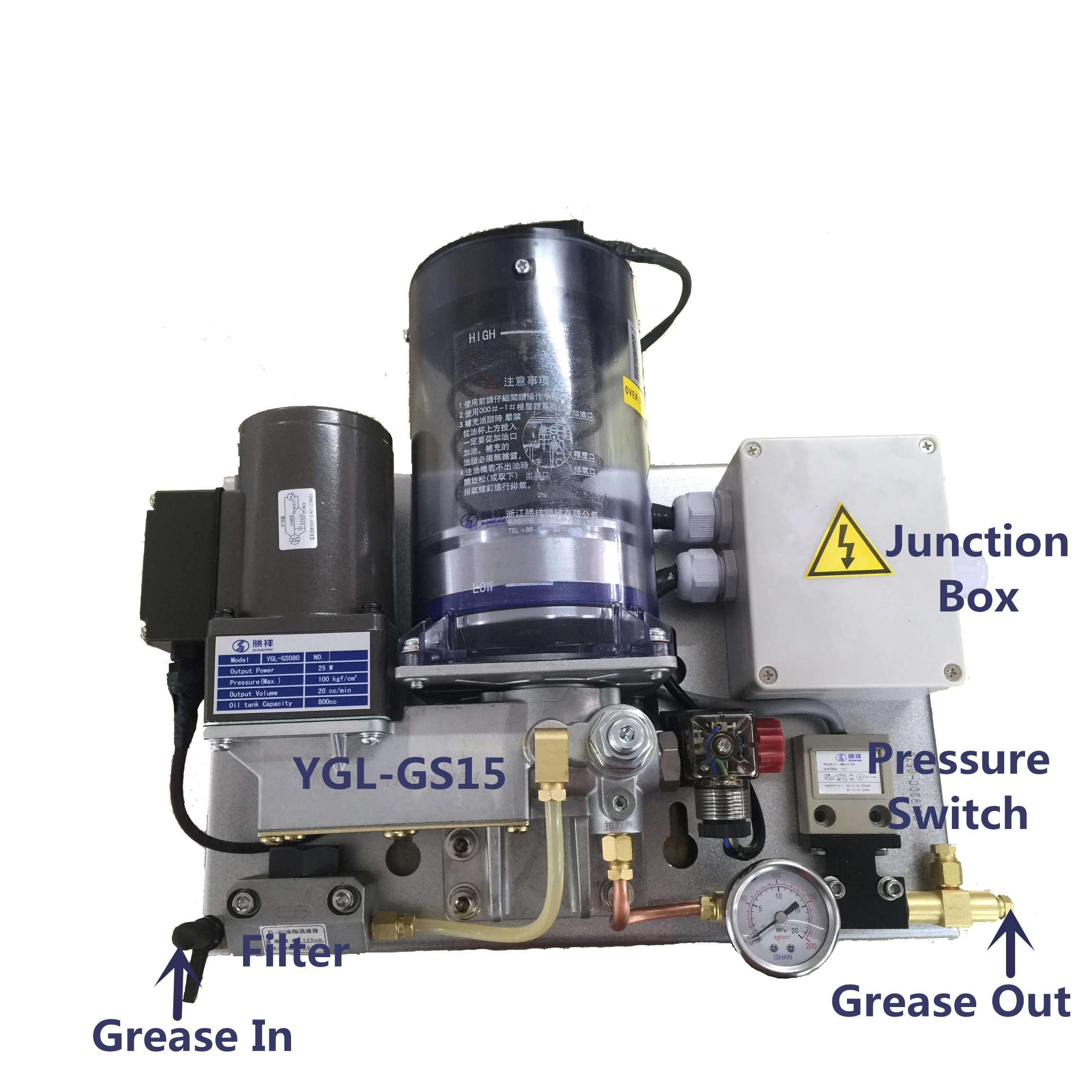 1.Including volumetric grease lubricator, volumetric grease distributor, grease filter and adapters.