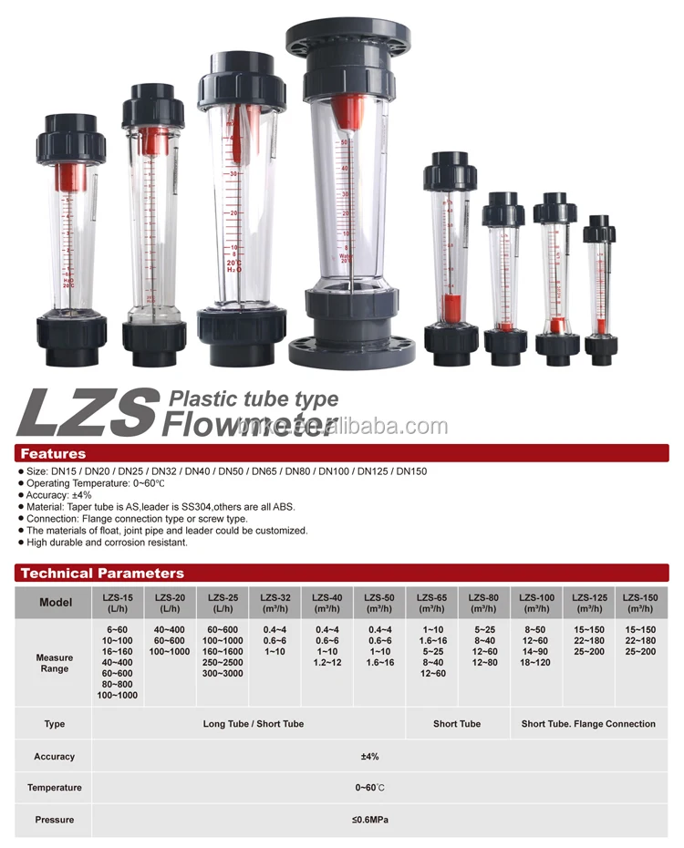 There are 2 types of LZS series flowmeters, which are divided into long tube type and short tube type. The difference is that there is no guide rod in the middle of the long tube type flowmeter, so its precision is lower than that of the short tube type with the guide rod; therefore, the series flowmeter floats are all made of plastic shell, so it has excellent acid and alkali corrosion resistance.
