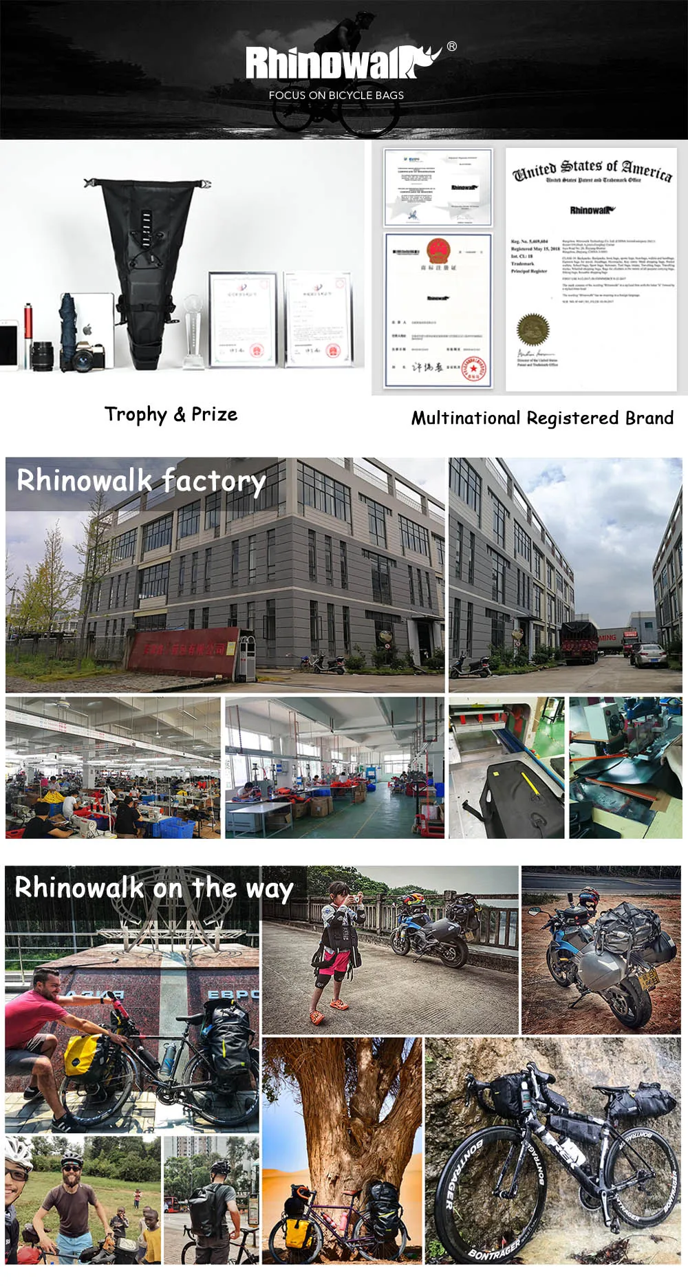 Hangzhou Zhejiang province. The company are specialized in bicycle bag and have its own brand-- Rhinowalk. Rhinowalk is a creative brand designed by a cycling lover. We have a great team for R&D and also have experience in OEM and ODM. We have a factory can make sure the delivery.