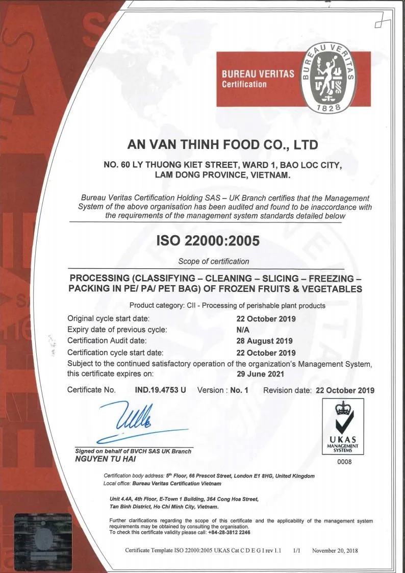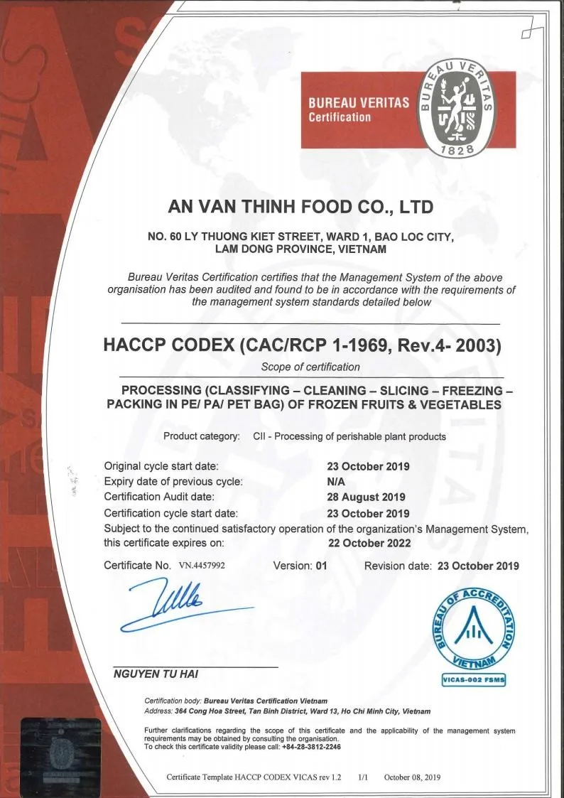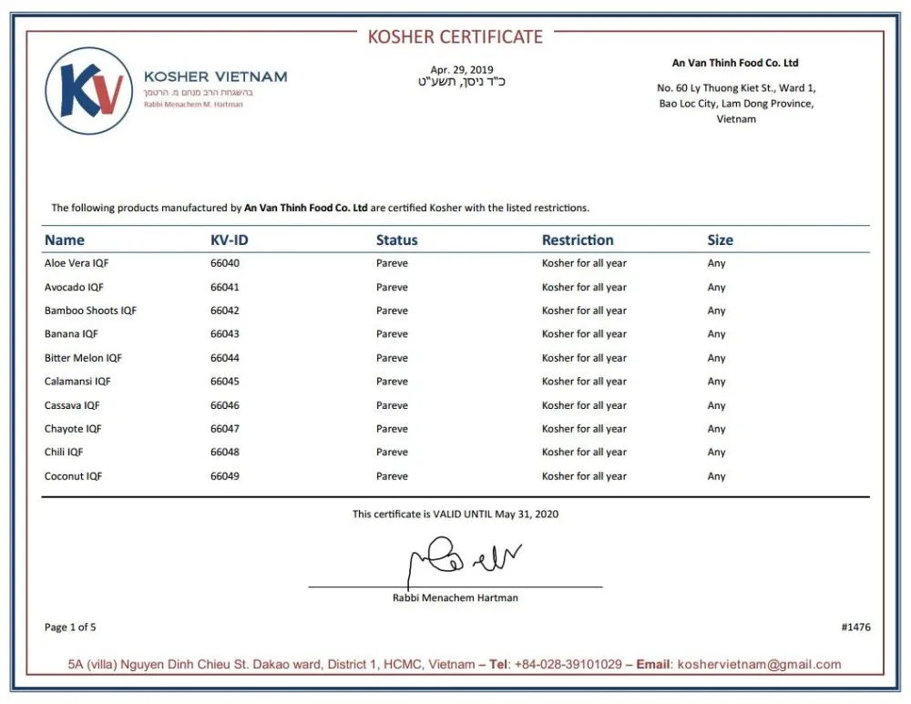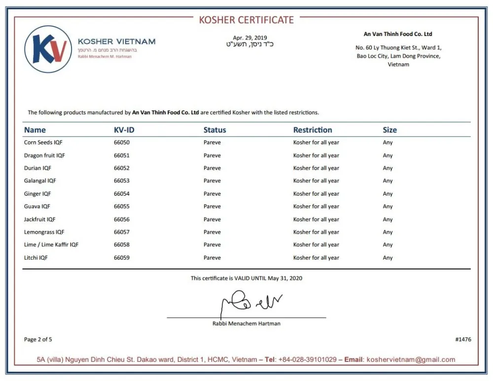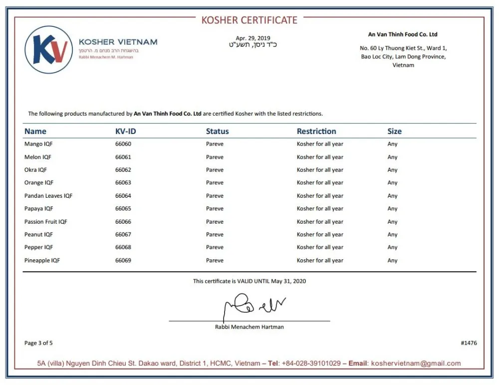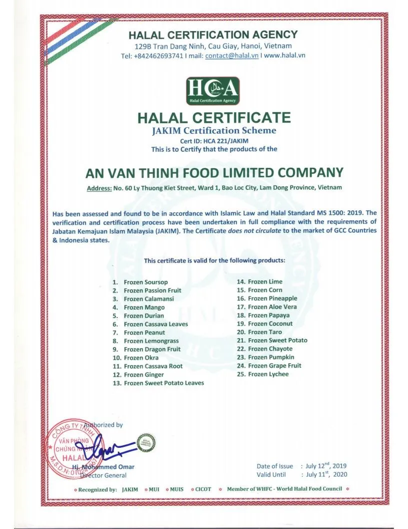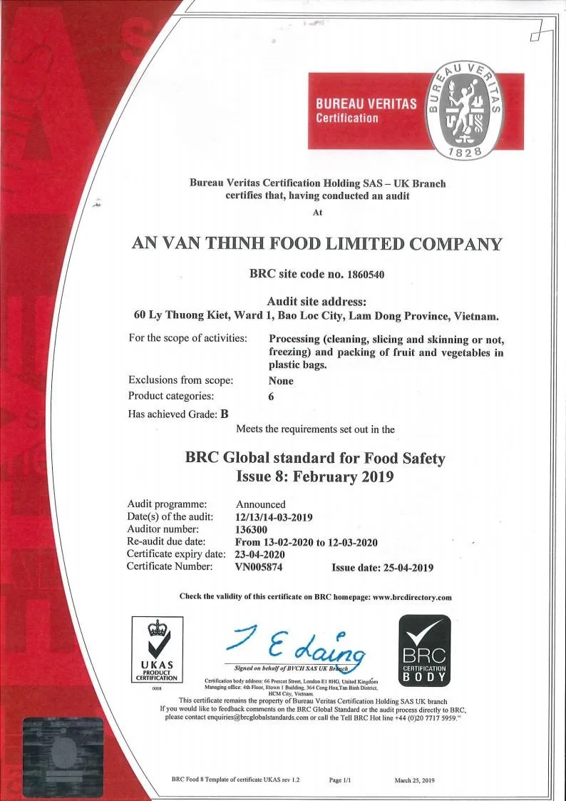 Certificate | U.S FDA, BRC, HACCP, ISO 22000:2005, GMP, HALAL, KOSHER, FSMA | |