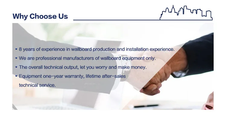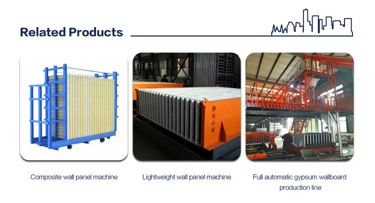 A:We can produce many types of wallboard, hollow wallboard, solid wallboard, composite sandwich wallboard and so on. Multi-purpose machine, adjustable thickness and length.