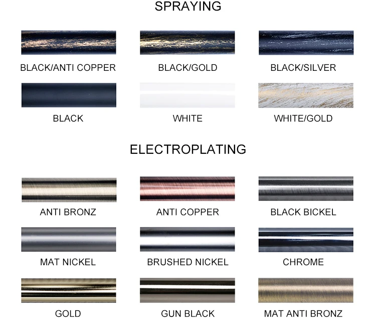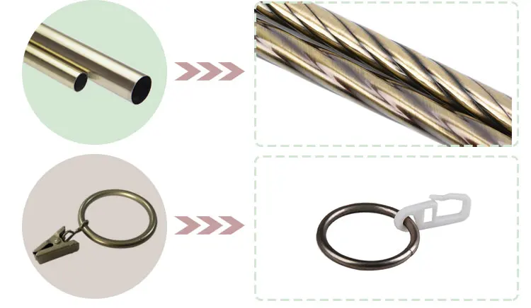 Sets | Finials*2pcs, Pipes*1pcs, Brackets*2pcs, Rings*10pcs/m, Hook*10pcs/m | |||||||