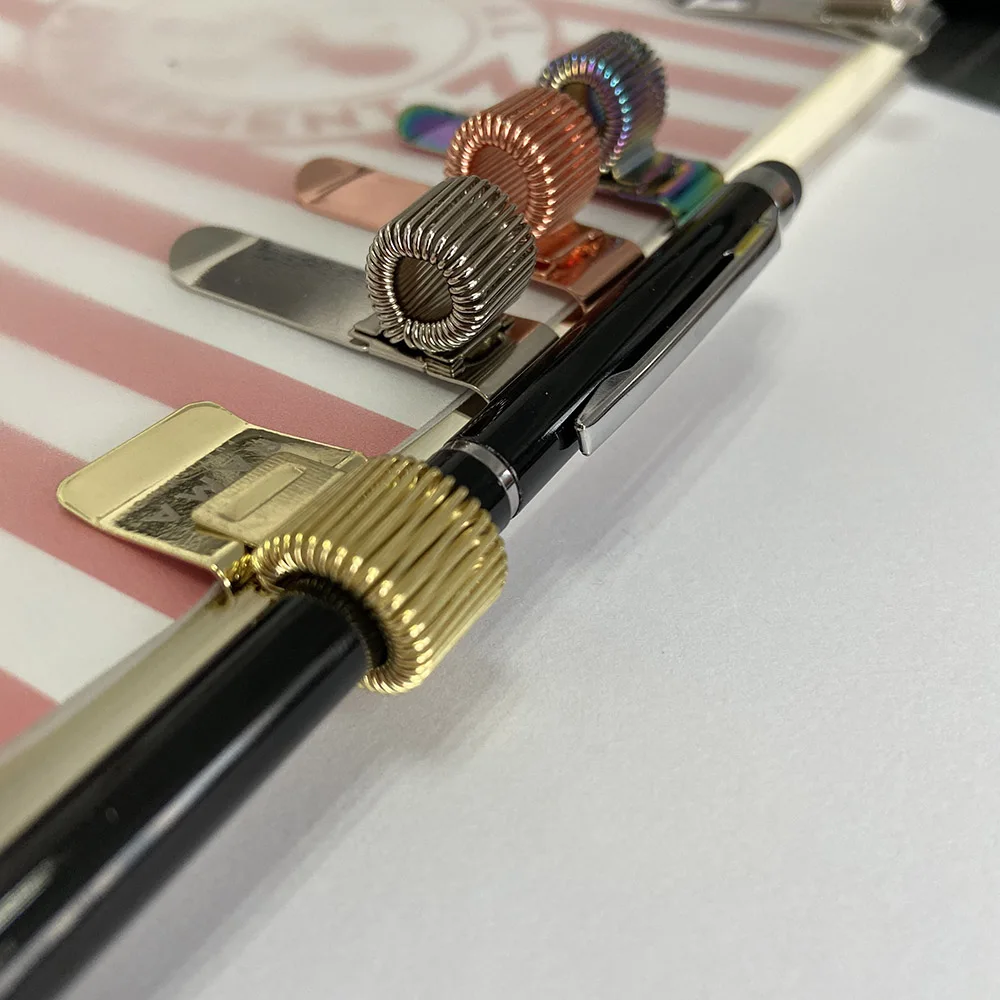 Customized High Quality Gold color Flat Metal Stainless steel Clip with Spring pen holder
