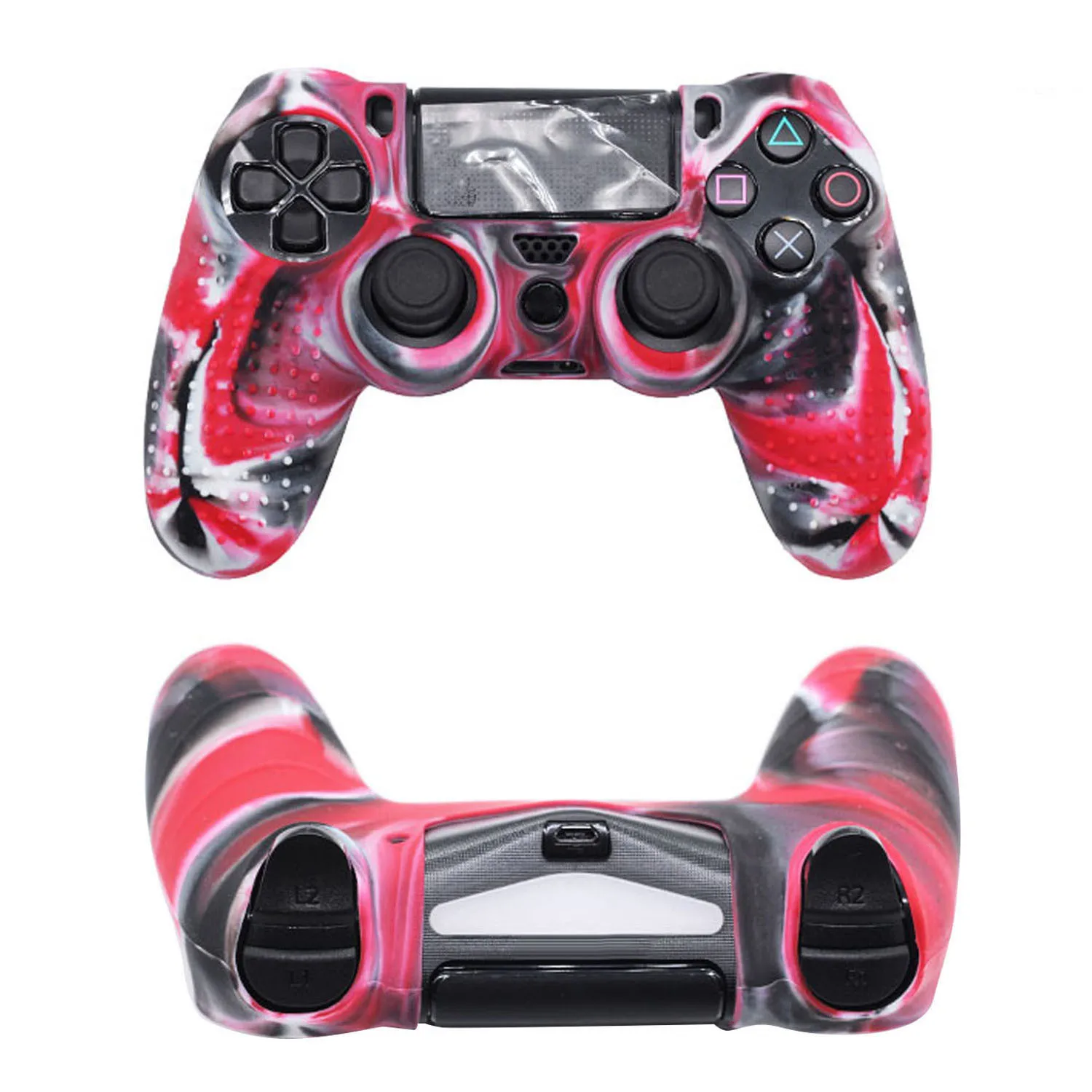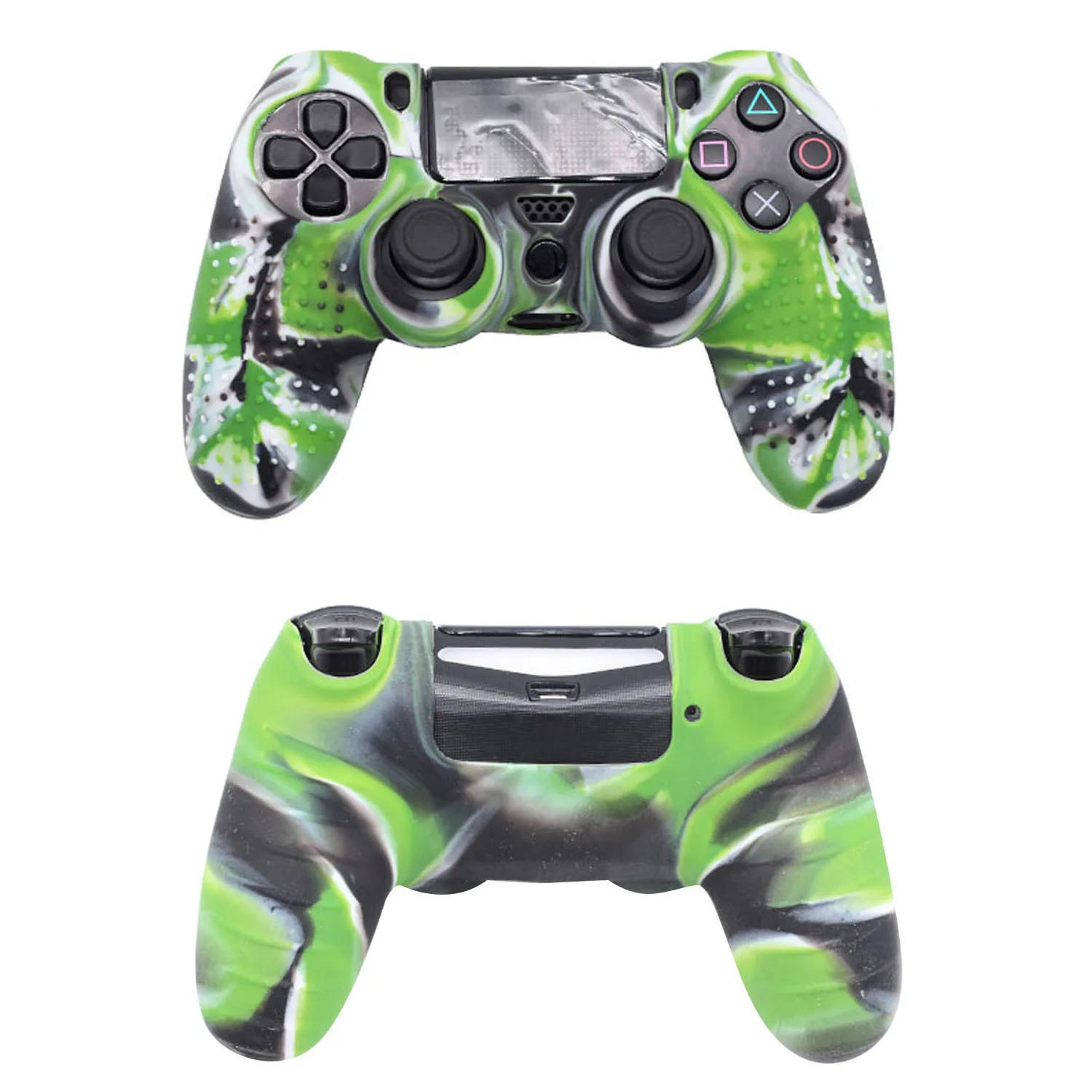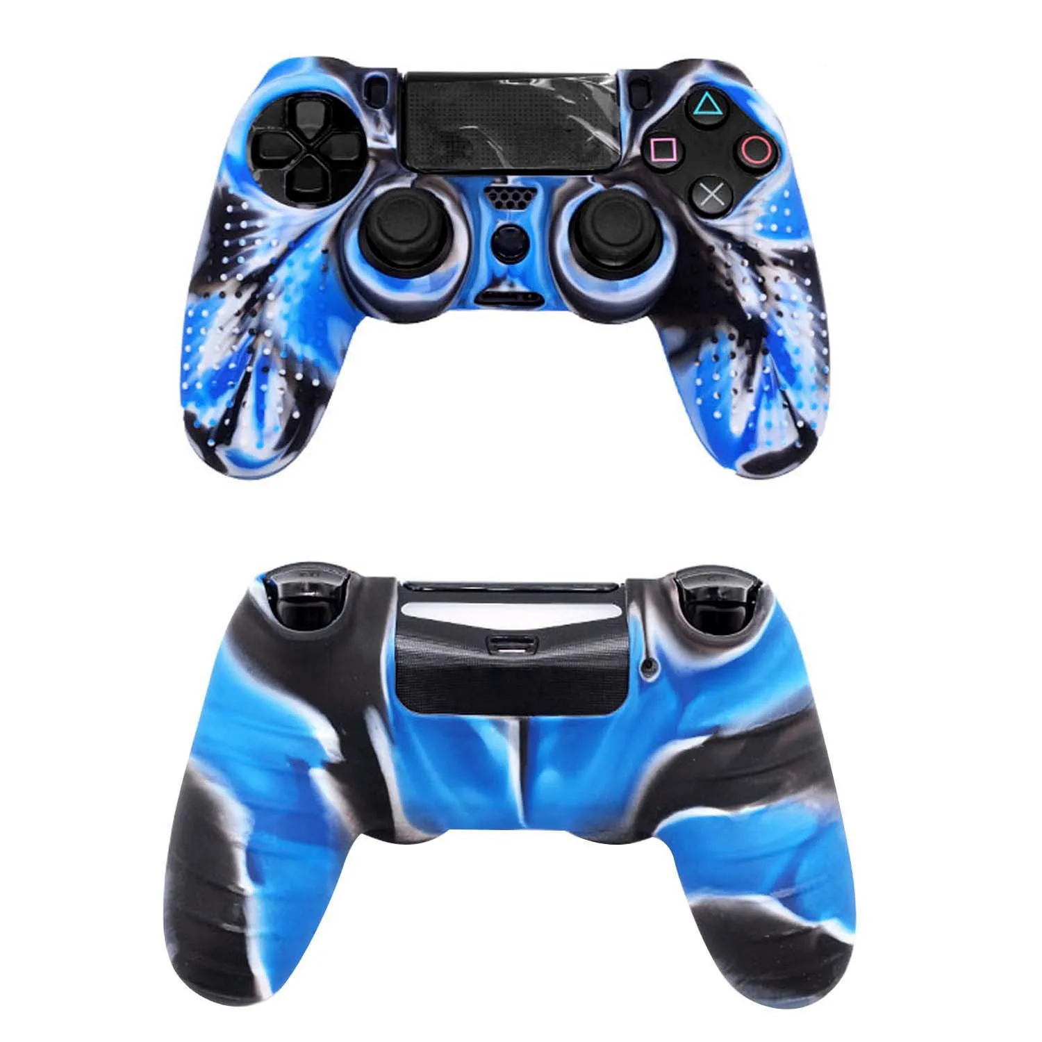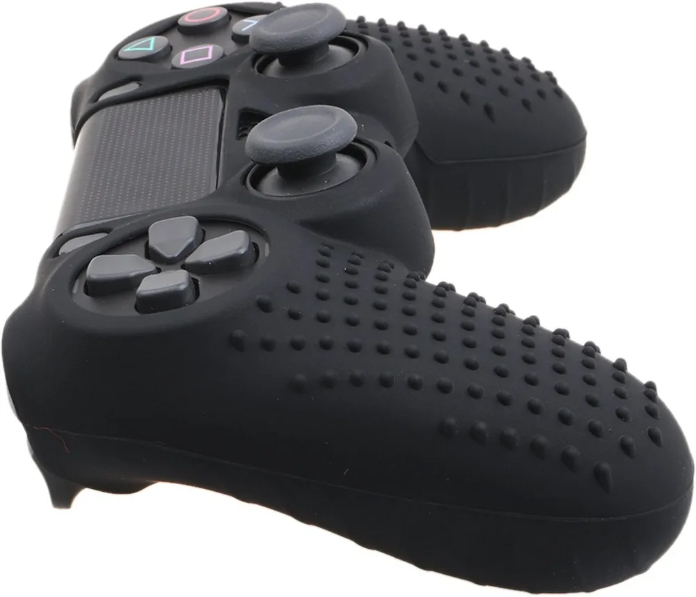 * High quality Medical Grade silicone made controller cover for PS4 controller; * Studded designed surface provides comfortable gripping, prevent slipping while game playing, no more worries for sweaty hands; * Very easy to install and remove, fits PS4 controller perfectly, would not affect any function; * Prevents any damage to PS4 controller from shocks, scratches; * Pro thumb grips x 8 included in package, with normal types and extra height types for all games such as FPS, ACT and so on