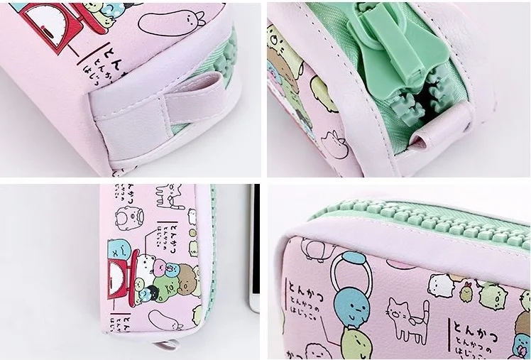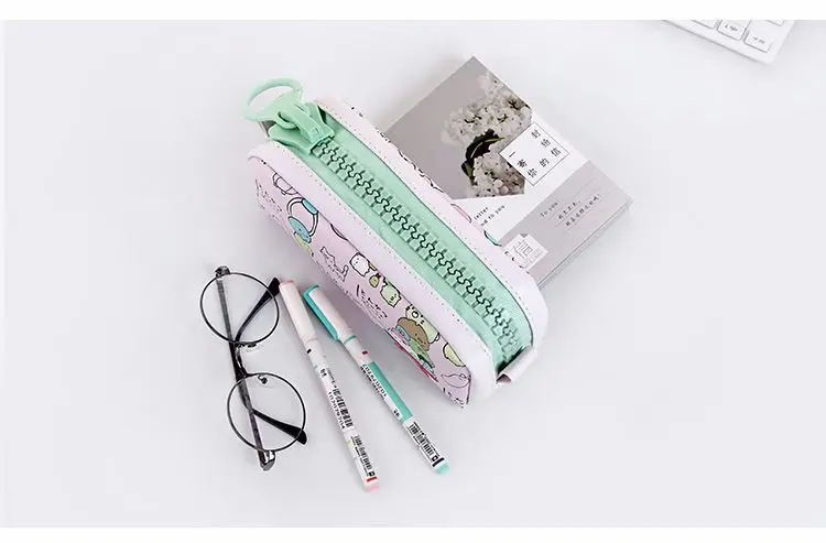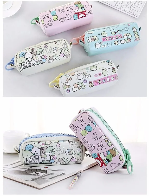 Cartoon Simple Pencil case Cute PU Leather Personality Zipper Student Large Capacity Stationery Bag high quality pencil case bag