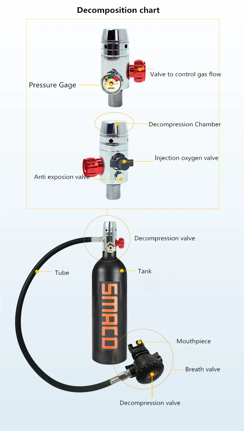 This Mini scuba air tank is perfect for Snorkelling,swimming,diving and other water sports.