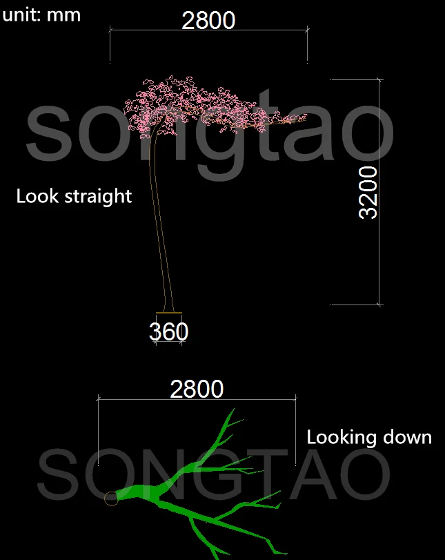 Material: | 1)Leaves: Advanced silk-screen cloth + brand new import plastic+steel wire+ PE 2)Trunk: fiberglass / real wood with steel structure 3)Bottom: steel structure for fixing Corrosion resistance, heat resistance ±50℃ |