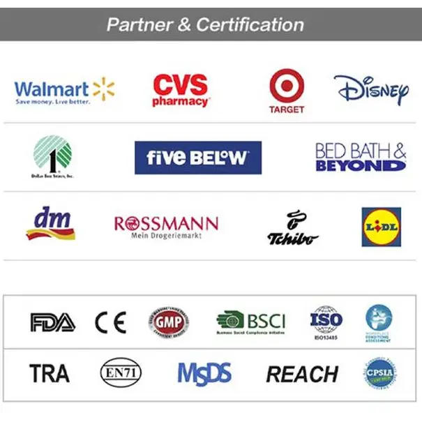 | Certificates | CE / EN71-3 / MSDS / CPSIA / TRA / ISO13485 / TRA / GMP / WCA / BSCI |