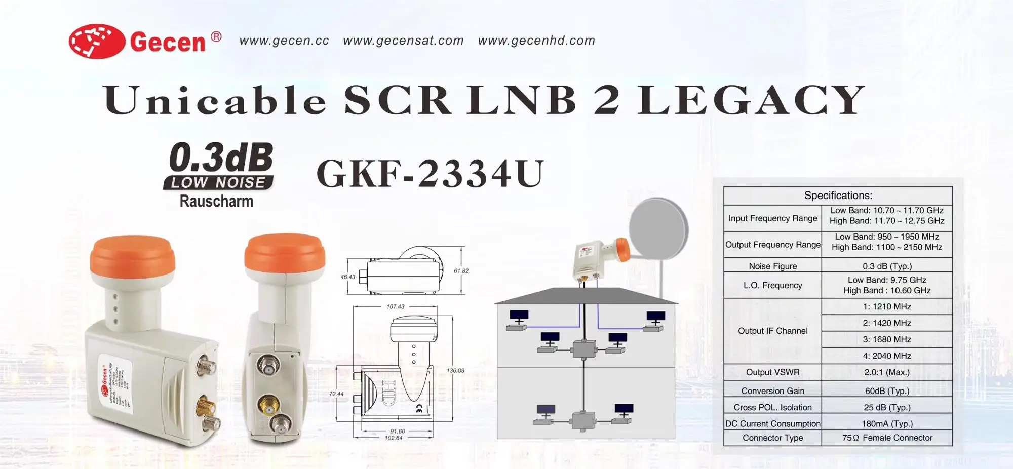 GECEN dvb s2 lnb hd universal single lnb ku band GKF-2113