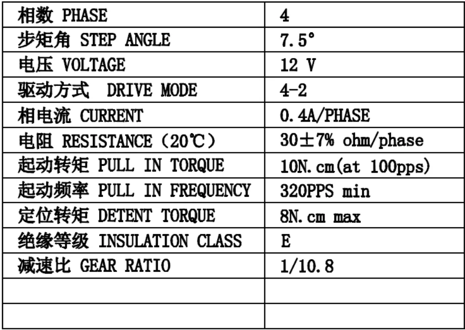 model | phase | stepper angle(°) | troque (Nm) | ratio | current(A) | Resistance(Ω) |