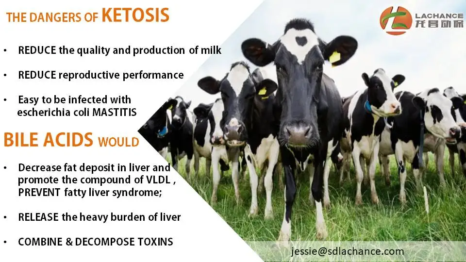 The addition of bile acids has a high retention rate in the rumen (9h, more than 85%). After being absorbed by the intestine, it excretes excessive accumulation of fat in the liver with the liver-gut circulation, inhibits the synthesis of fat in the liver, and ensures liver health. It will allow the liver to absorb nutrients such as feed nutrients and synthesize its own sugars.