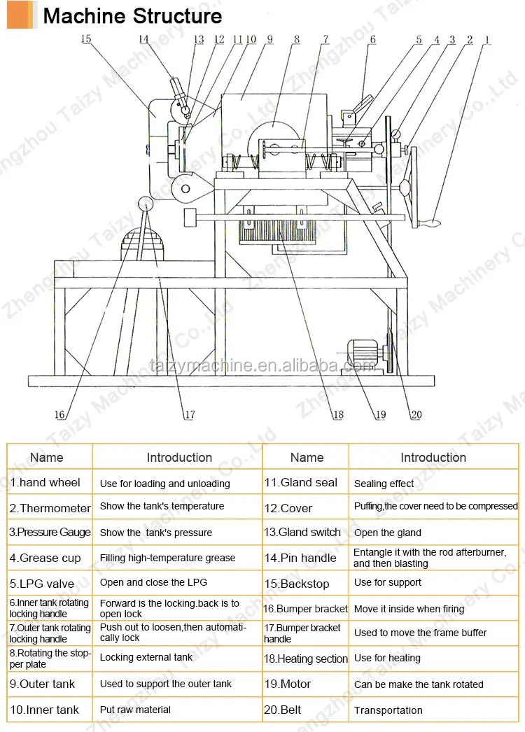 3.Multifunctional Usage Suitable for puffing all kinds of rice, millet, wheat, barley, buckwheat, corn, sorghum,beans etc grain which contains starch.It’s with crispy taste.