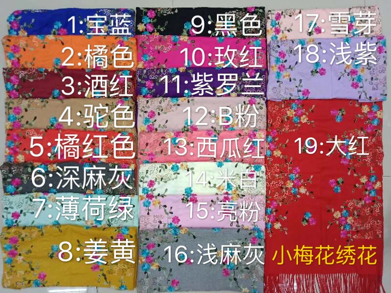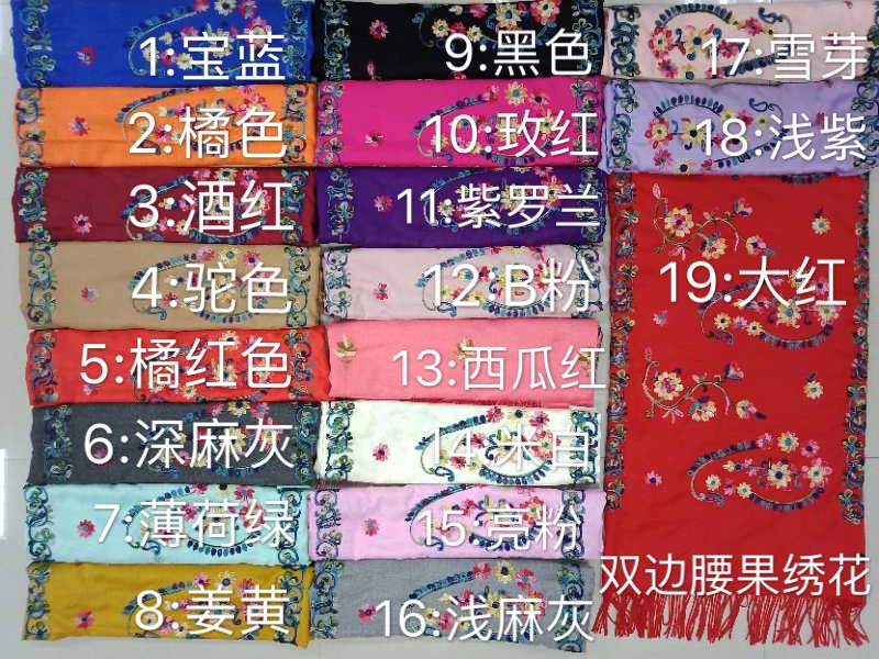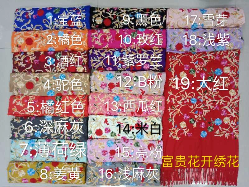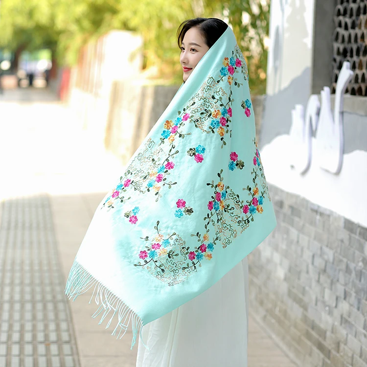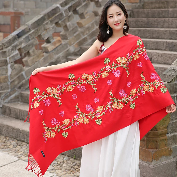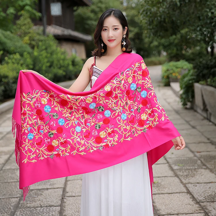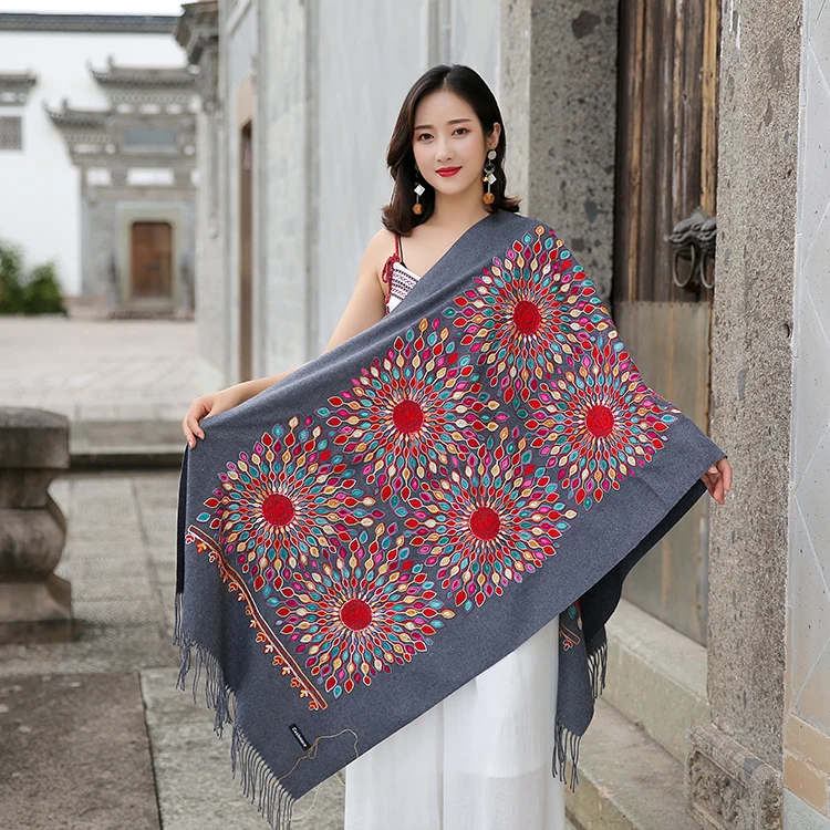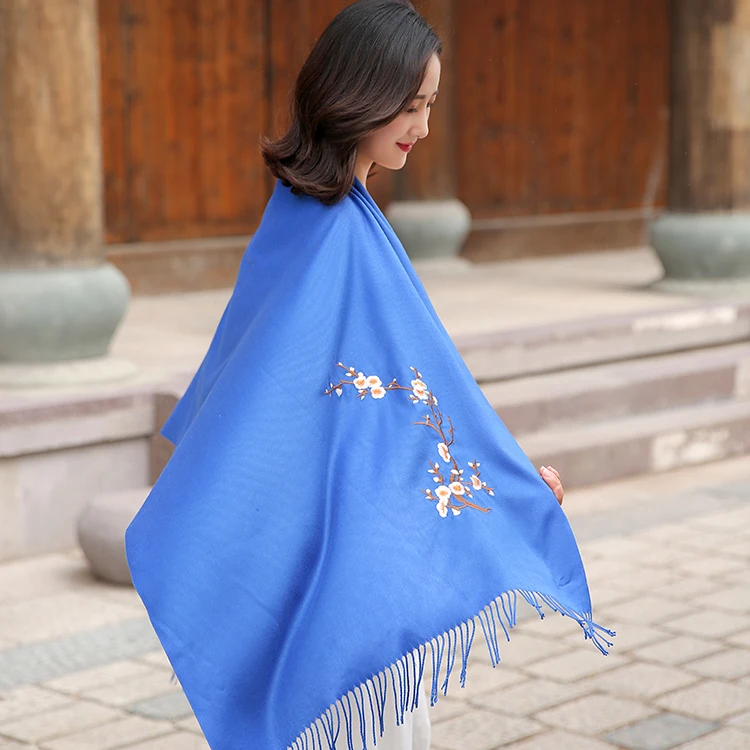 Wholesale Winter Pure Color Cashmere Scarf Women Ethnic Style Handmade Embroidery Scarf Cashmere